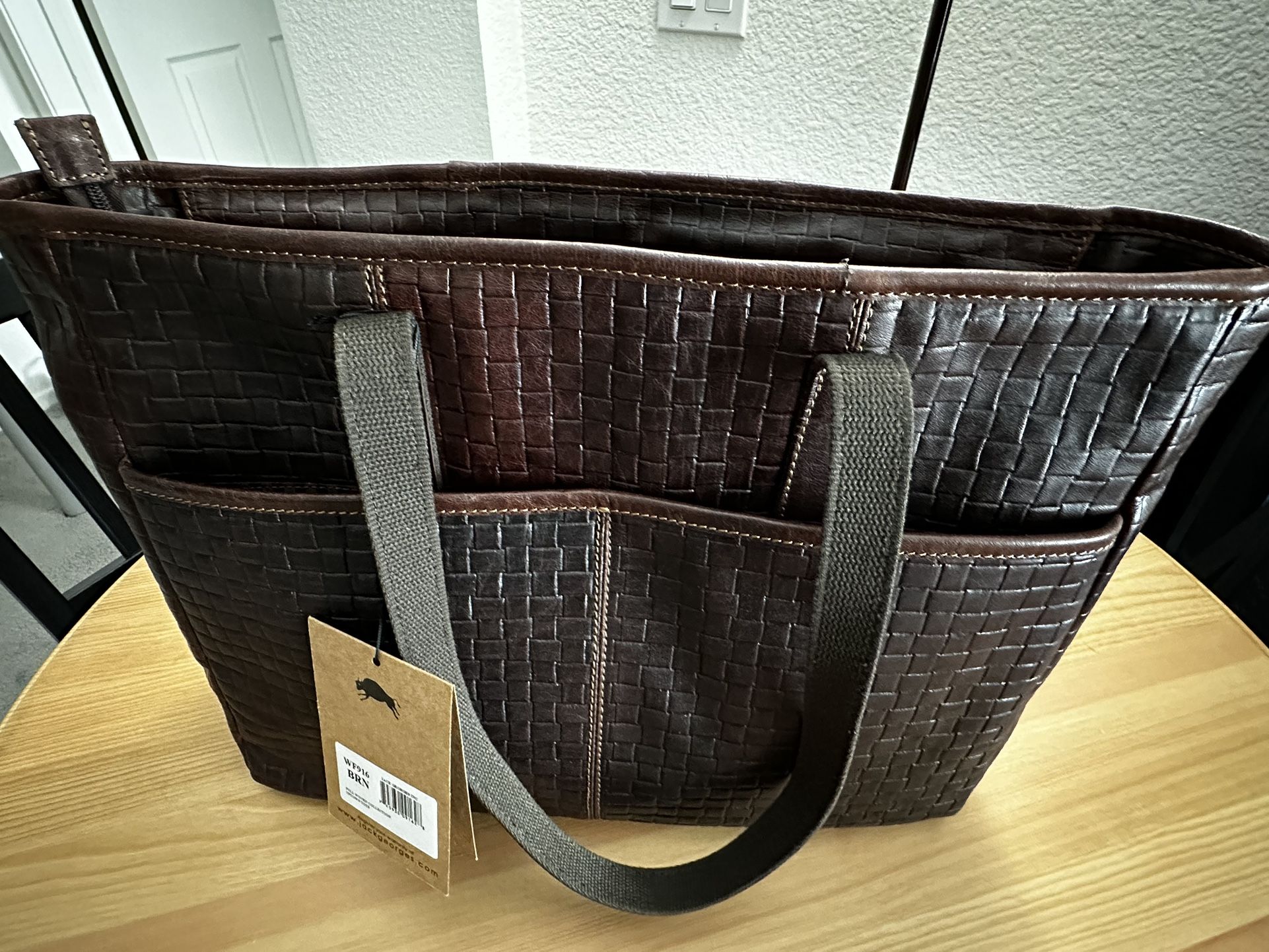 Leather hand bad. Extremely well made. Separate compartment for carrying 15inches laptop. Documents. Small pockets for essentials. Less than 2 pounds weight. Got 2 so selling 1.