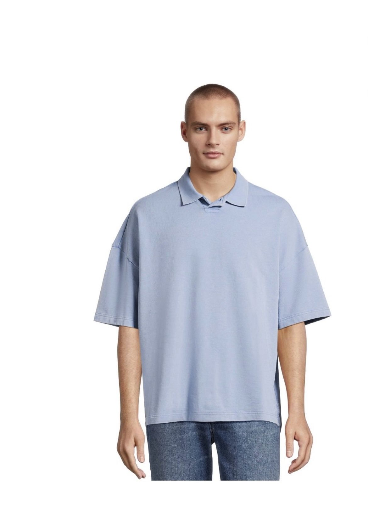 No Boundaries blue Mens Oversize French Terry Polo Shirt, Size L (42-44). New pick up only