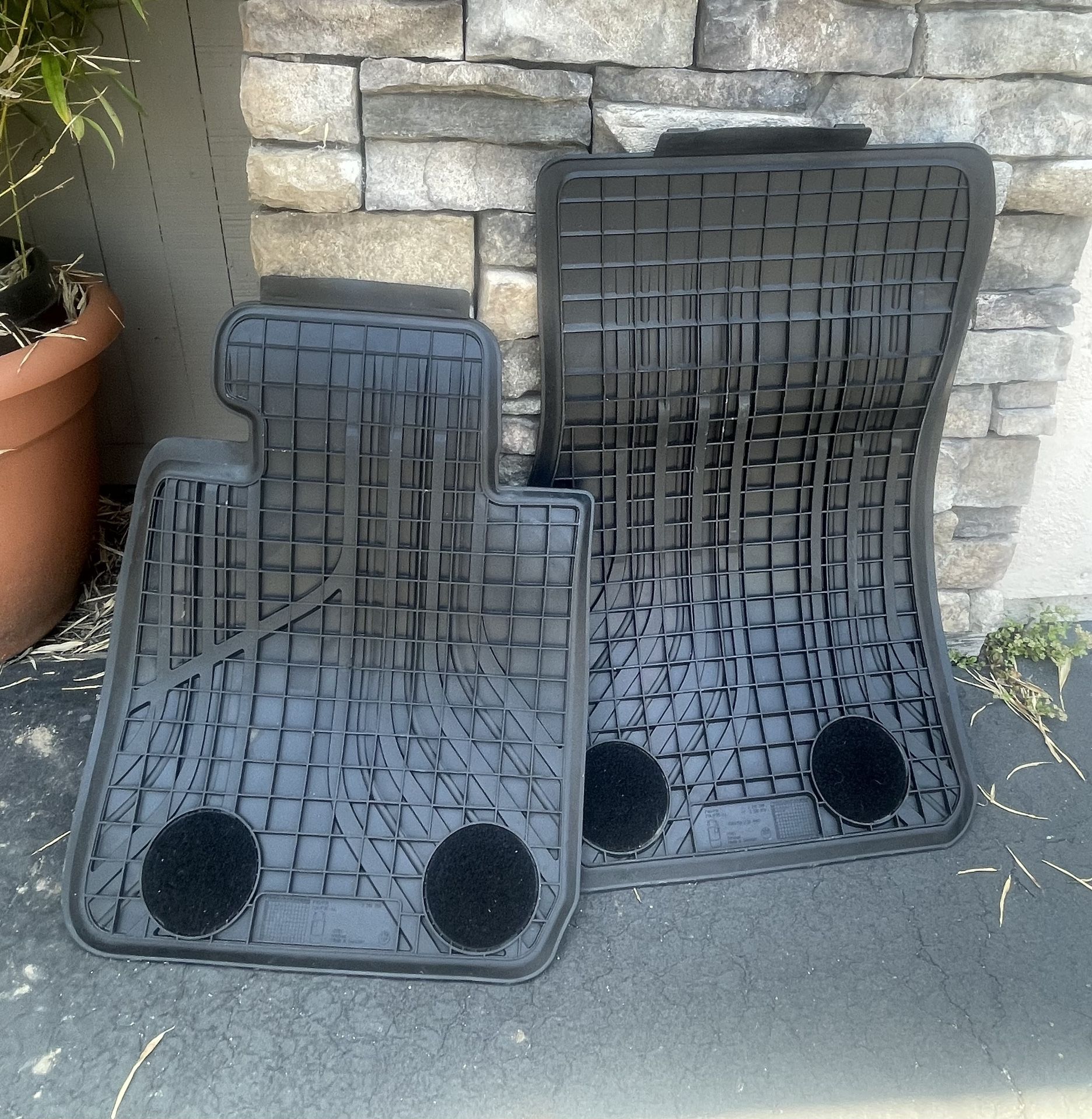 ORIGINAL FRONT rubber mats- these are 2 authentic BMW floor mats for the front seats, with no scratches, discoloration, etc just normal use. Good thick rubber, easy to clean. $48