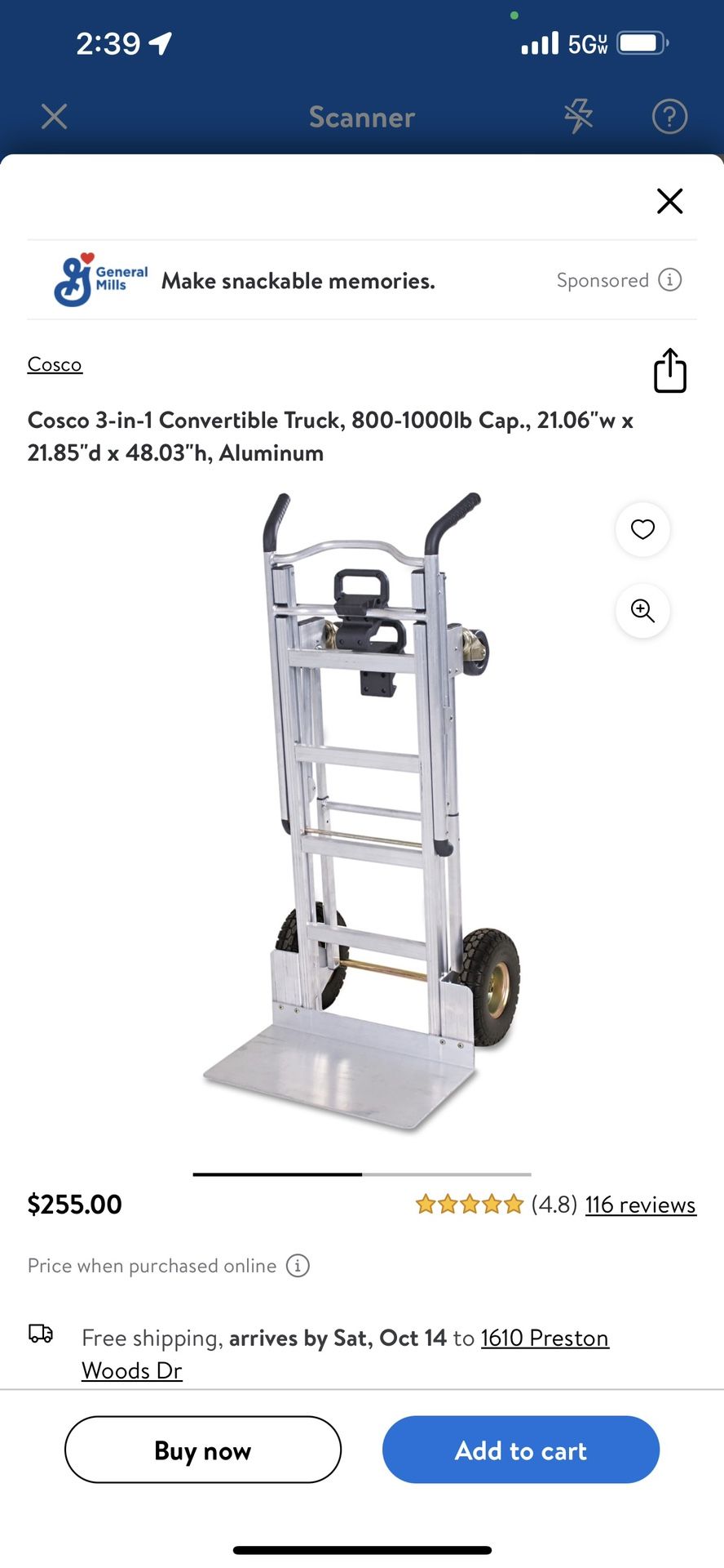 Cosco 3-in-1 Convertible Truck, lb Cap., 21.06"W x 21.85"d × 48.03"h, Aluminum New in box Pm if interested