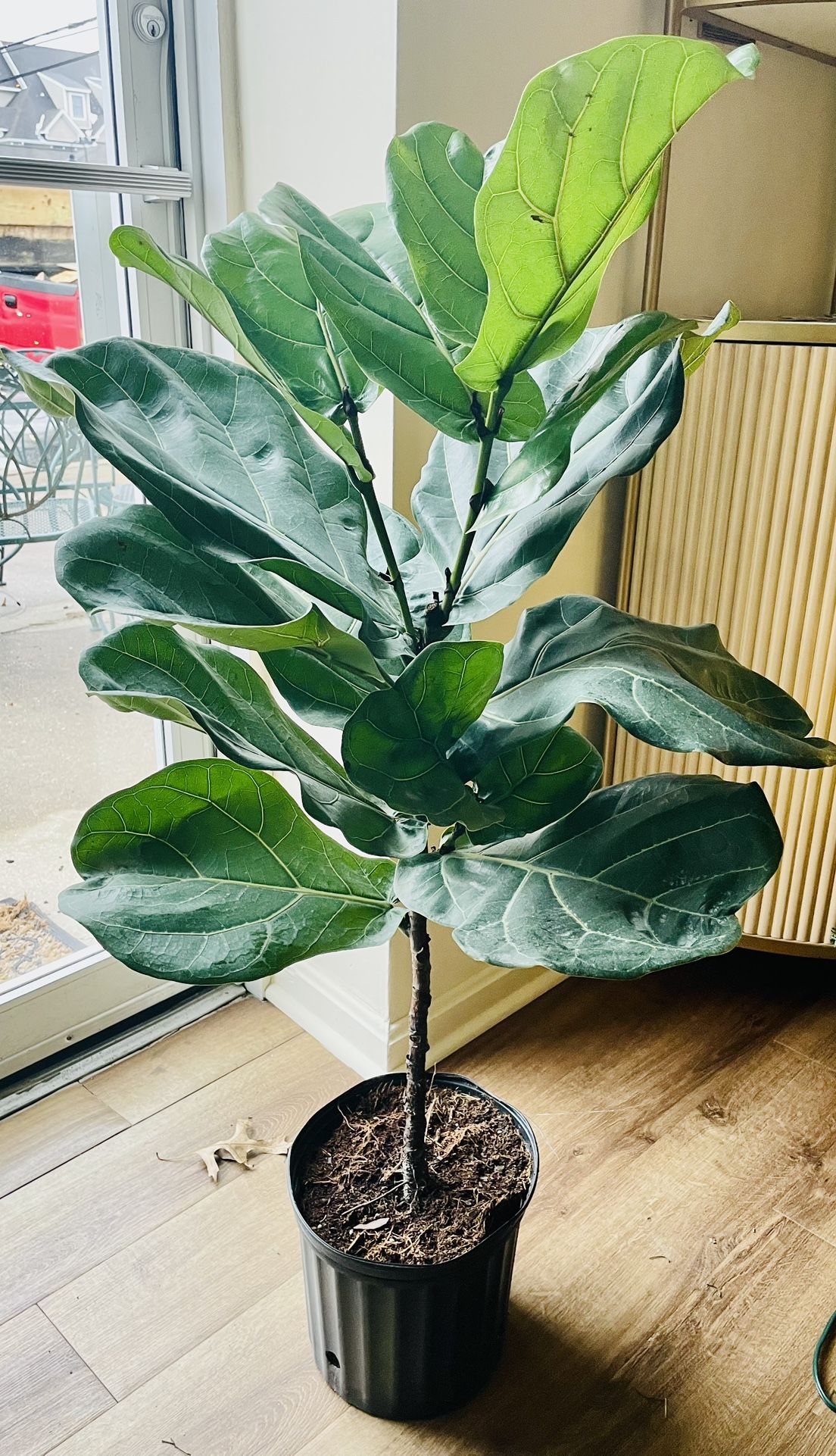 Gorgeous Fiddle Leaf Fig plant. Lush and healthy. About 4ft tall. Comes in black nursery pot. Decorative pot, when available, $18.00 extra. Free delivery in DC.