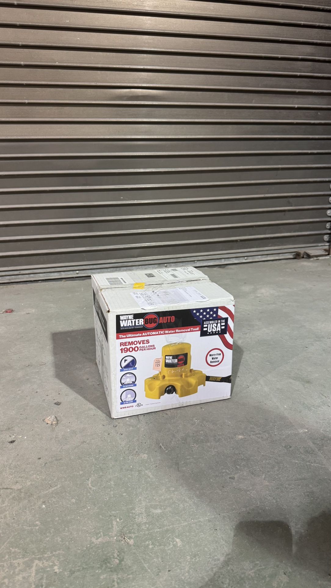 Brand new WAYNE - WaterBUG AUTO 1/4 HP 1900 GPH Auto On/Off Submersible Pump with Multi-Flo Technology - Water Removal and Transfer Pump, Yellow + Flexzilla Garden Hose 5/8 in. x 50 ft., Lightweight All-Weather Water Hose, Durable and Flexible, Leak-Free Connections