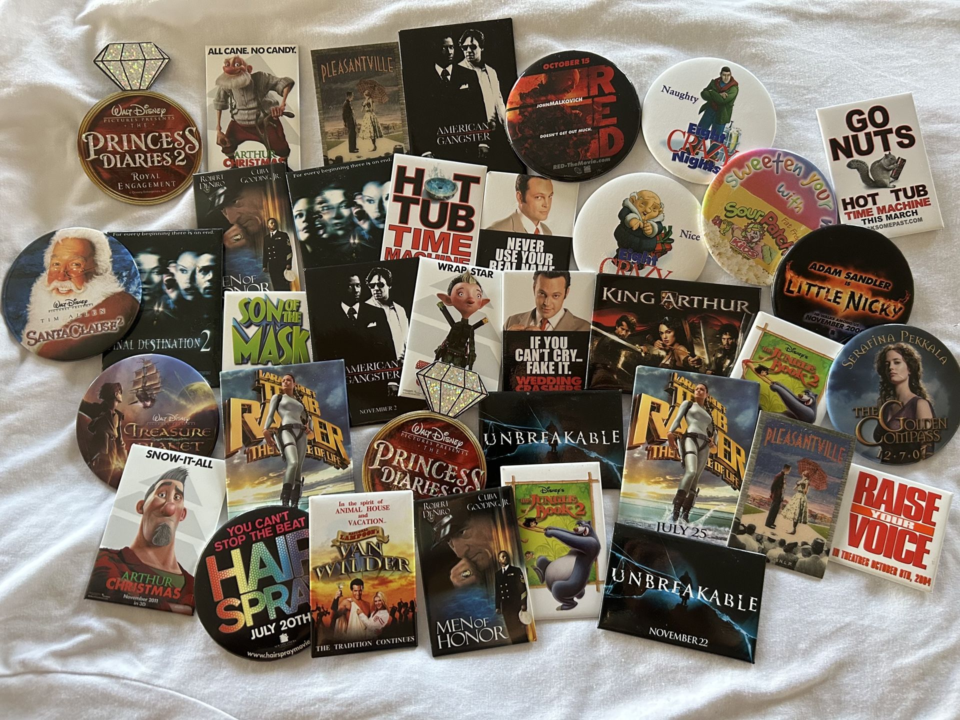 Collection of 55 assorted movie promotional pins. Great for collectors or movie enthusiasts. They make great stocking stuffers. All in excellent condition.