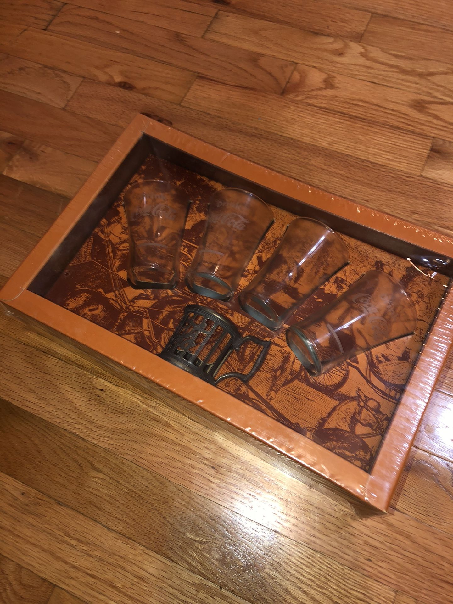 1890 Flare Coke Collector Glasses Set w Genuine Pewter Holder. New in Box! Never Opened