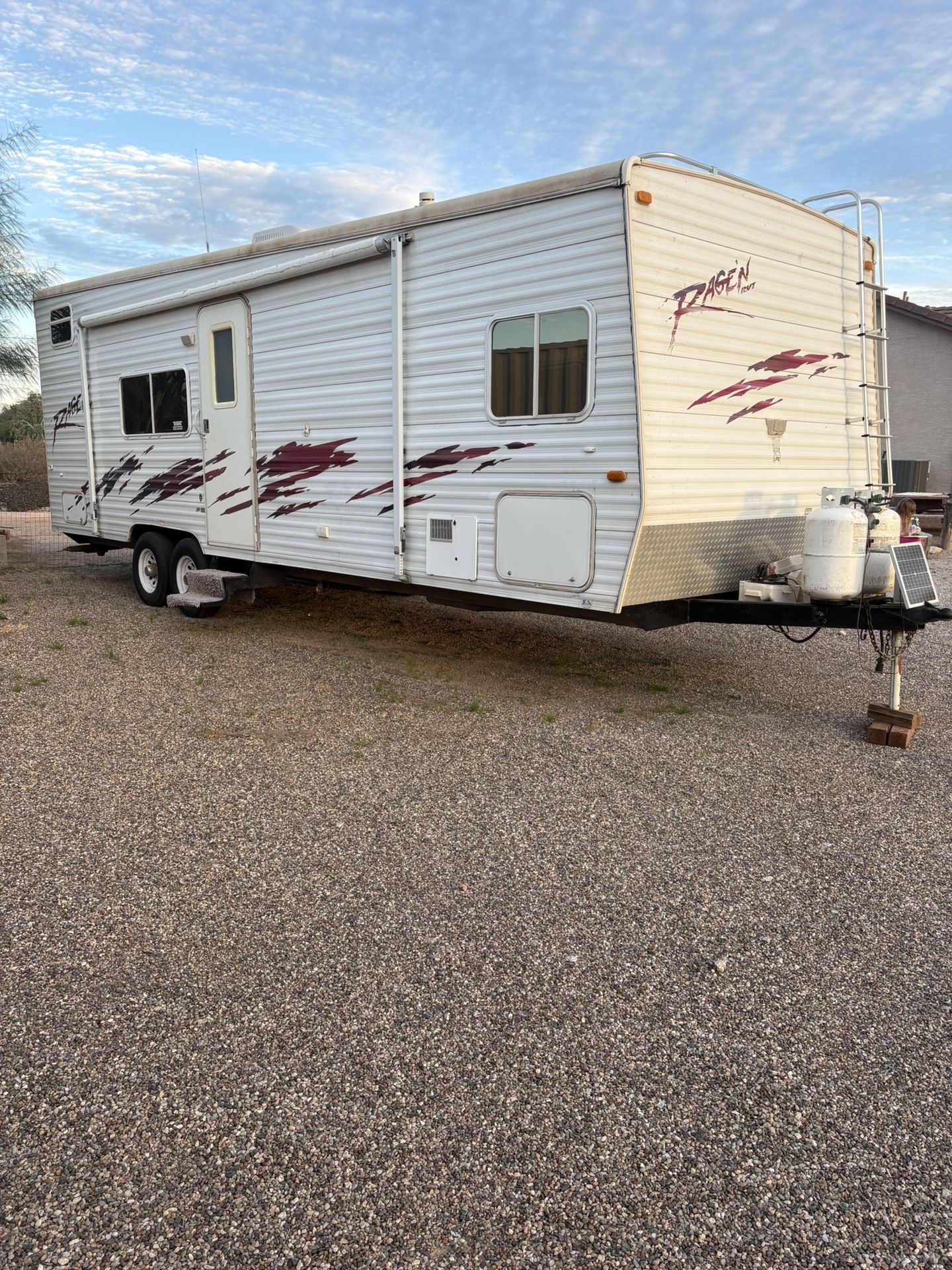 Pictures were taking right after camping trip.Will be all cleaned out when sold. 30 ft ,all four new tires.Couple months https://offerup.co/faYXKzQFnY?$deeplink_path=/redirect/ everything works as should except something is going on with the onboard generator.We just bring along a portable one if u have one. Fits a 4 seater can am. Little flaws are my dog got to a couple of blinds shown in pictures and a little hole in screen door.Thanks for looking