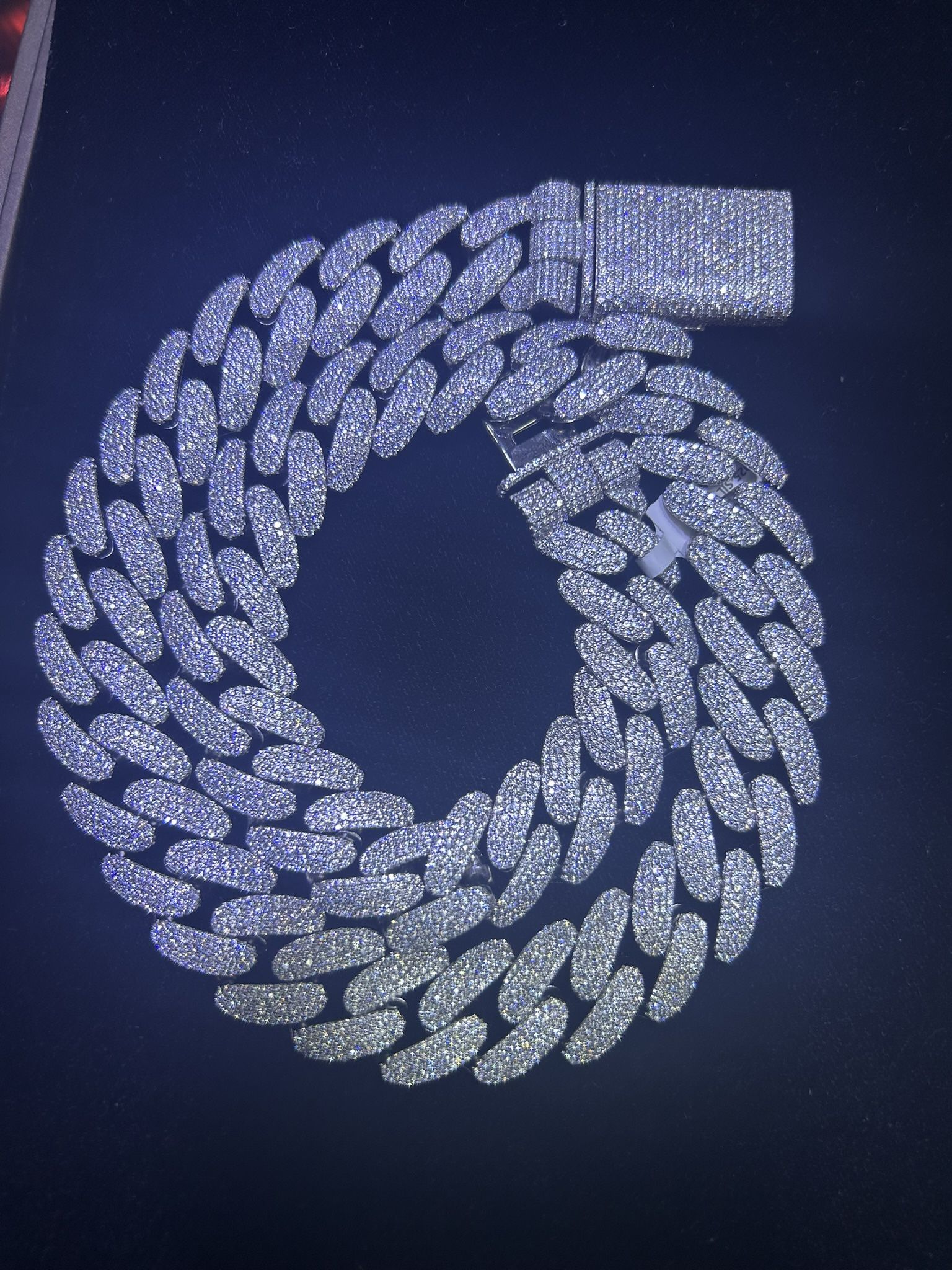 40 carats of VVS clarity, D-color stones Half a kilo weighted chain Passes diamond test Iced chain Pay $70 and walk out with it.