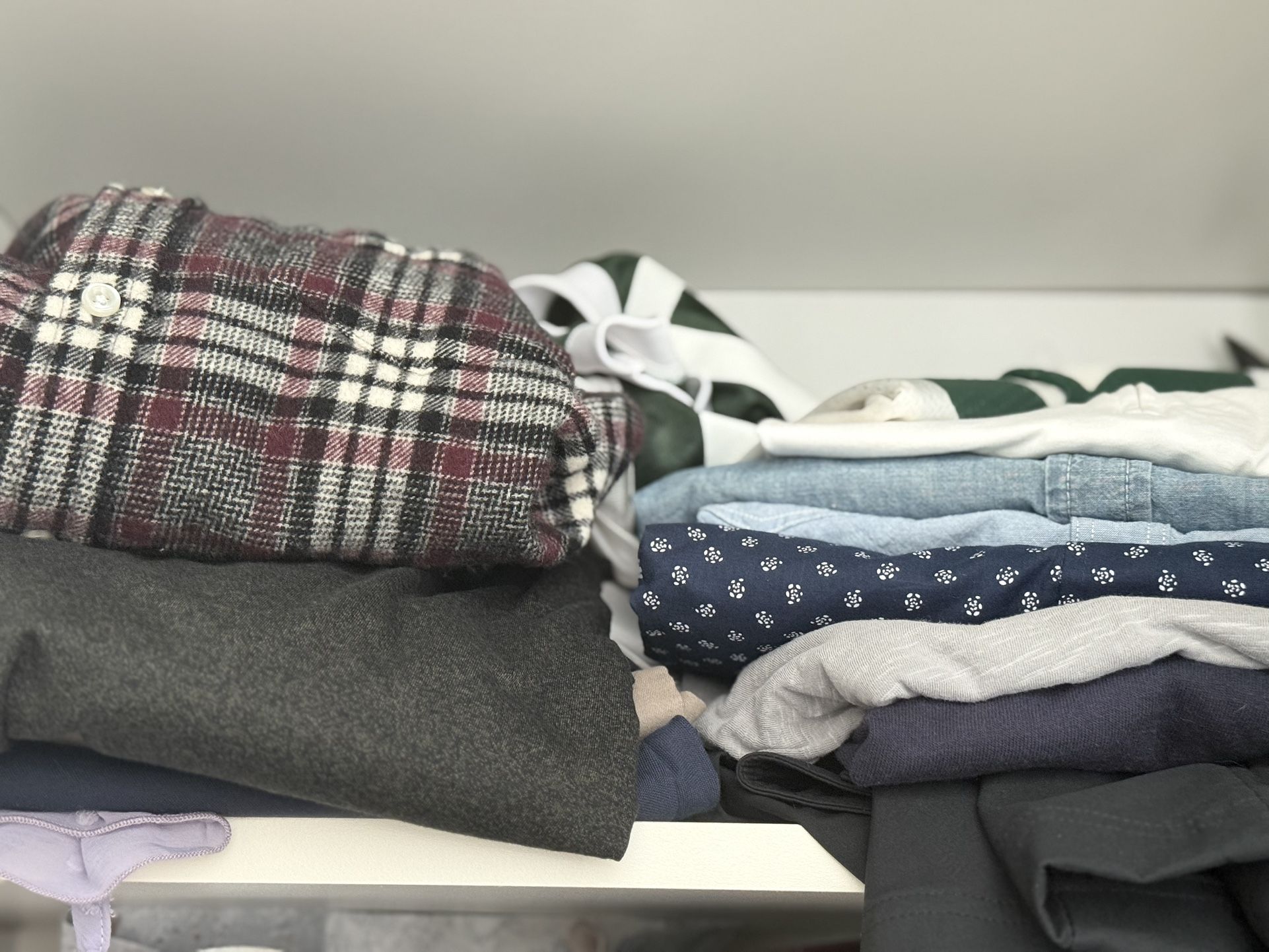 Selling a bulk amount of clothing sizes L/XL and 36 W. All have designer cuts and all brands are top notch right below the super luxury ones. Junk Food Clothing, Slate and Stone, Club Monaco, Lucky, Banana, Guess, Zara, Tommy Hilfiger, Ruffalo and others… Pants, button downs (short sleeves and long), at least one flannel, shorts, tees, slacks… and whatever else is there will be thrown in. All are in excellent condition. There are a few that are new with tags as well.