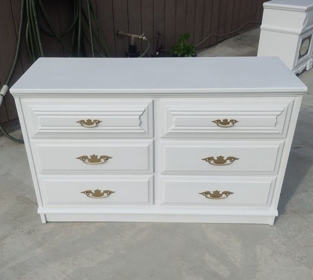 H30" W48" D18" Refurbished. Excellent condition solid wood dresser. No damage/issues. Dovetail joints. Drawers open/close smoothly. First come first served. No holds.