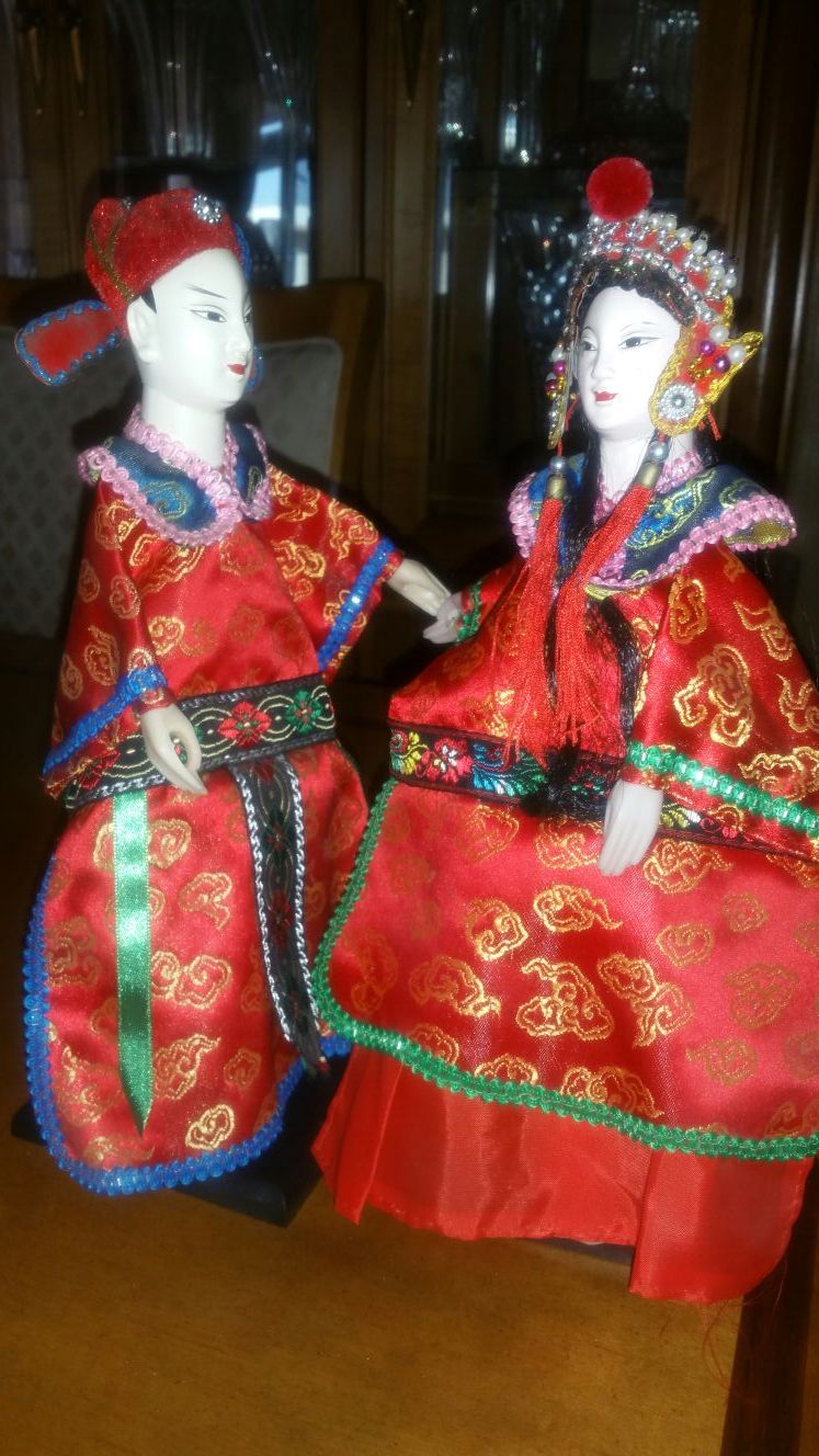 Traditional Chinese Newly wedded hand puppet dolls, as is. Two dolls for $60,oo, as is