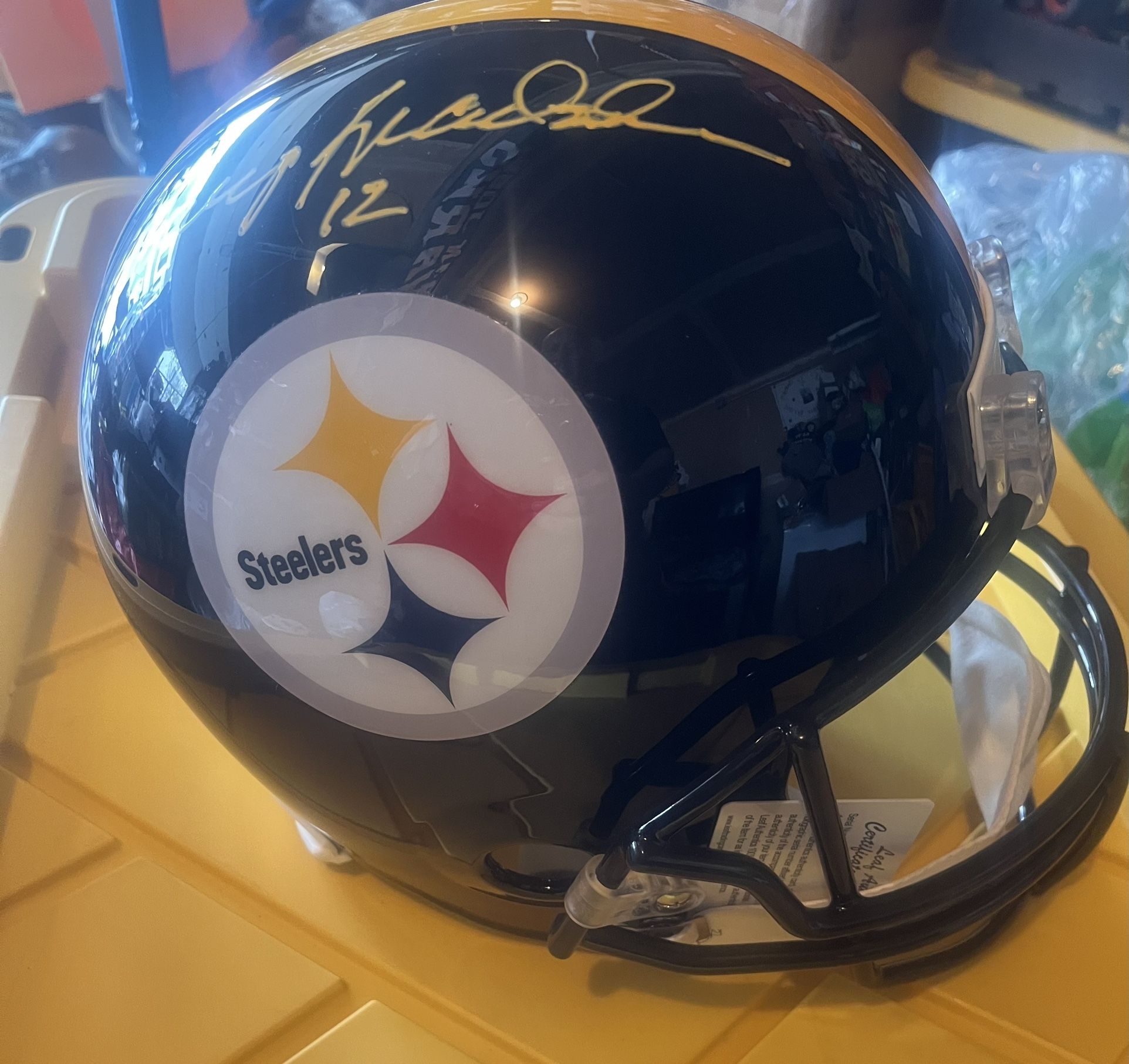 New Terry Bradshaw, full size rep helmet with leaf COA, sticker and card card