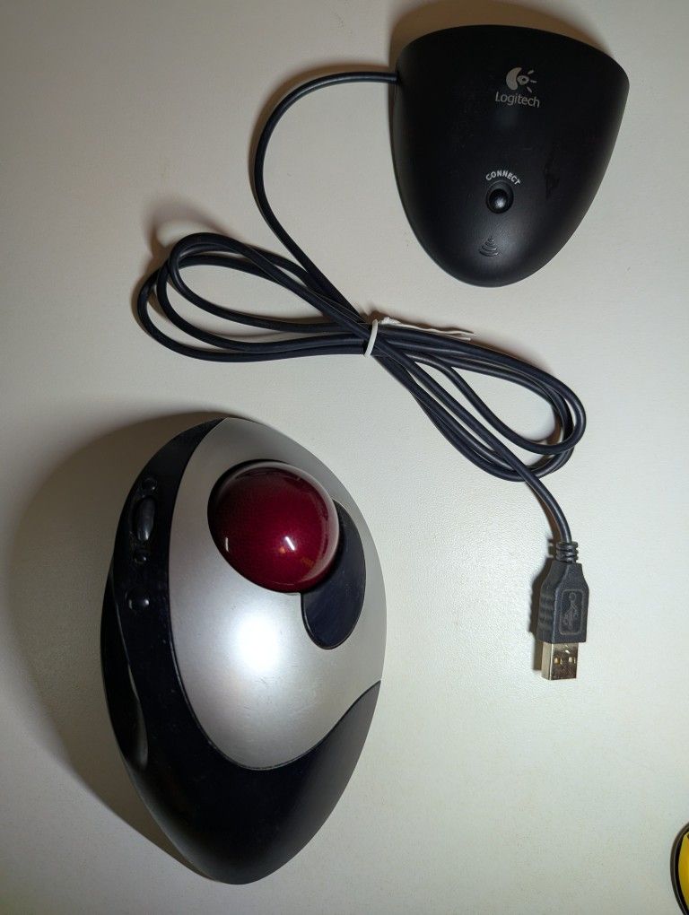 Includes T-RB22 cordless optical trackman mouse and C-BA4-MSE receiver. Receiver connects to computer via USB. Mouse takes two AA batteries. For pickup only. Alvernon and 29th area.