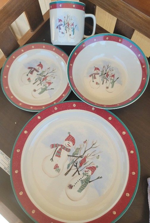 16 peice dishware set 4 plates 4 salad plates 4 bowls 4 mugs Stoneware microwave and dishwasher safe