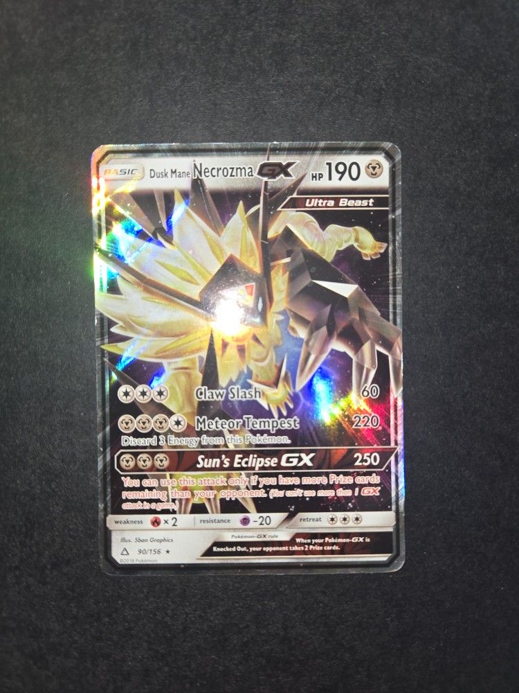 Dusk Mane Necrozma GX (90/156) from Ultra Prism Pokemon card Card has edge wear, see pictures for details Price based on TCGPLAYER I am willing to bundle with other listings on my account, just ask! :)