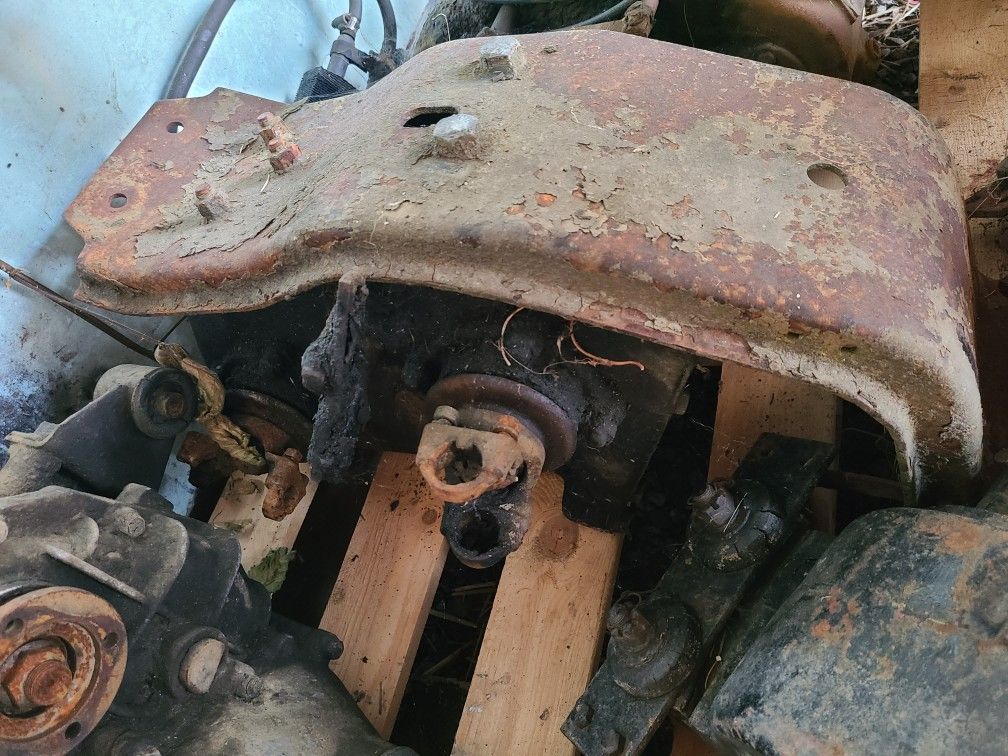 Divorced transfer case, passenger side drop. Spins smoothly in each position and has mounting crossmember. Ended up not needing it after all and want space back in the shed. Out of an International travelall