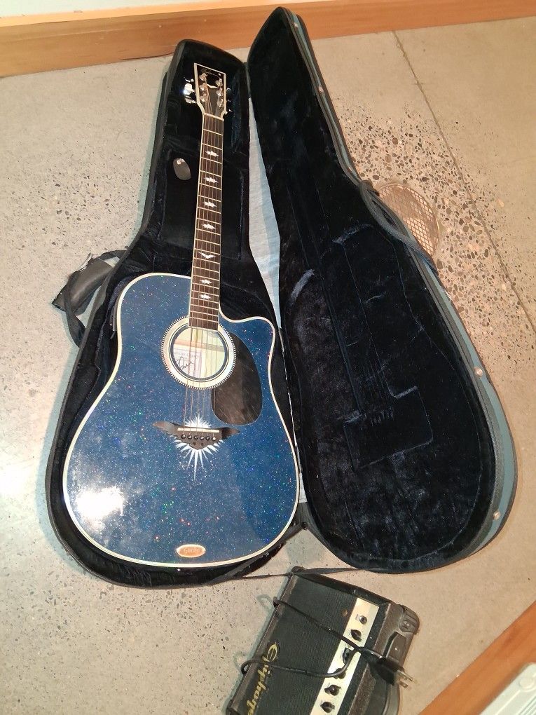 Missing jewels on guitar, comes with case and amp with amp cord and a mini stand Gecko American legacy starlight limited edition Acoustic electric guitar #16785/25,000 Epiphone amp