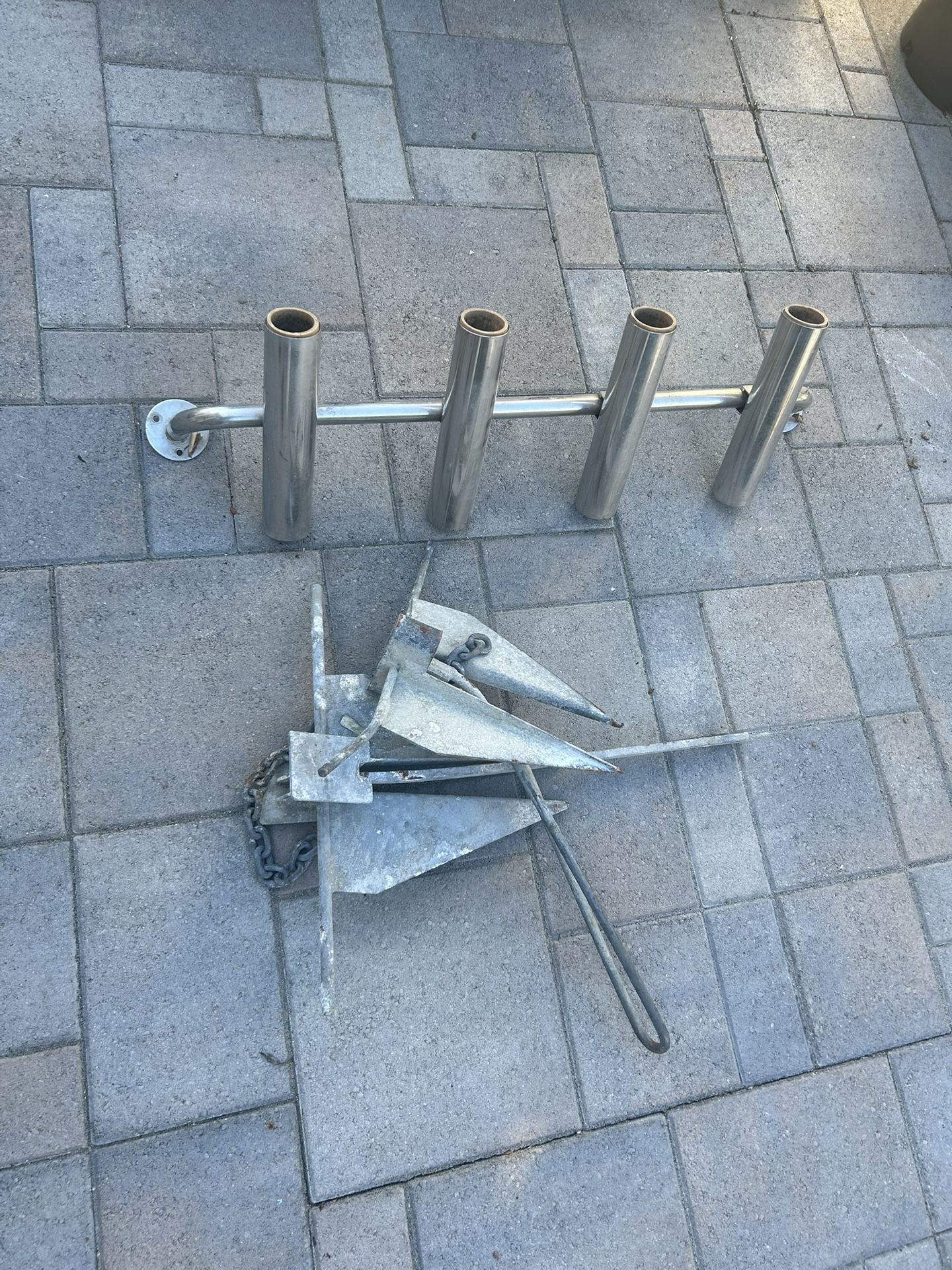 Boat rod holder. 2 used anchors. All for $70 obo Pick up only in San Pedro.