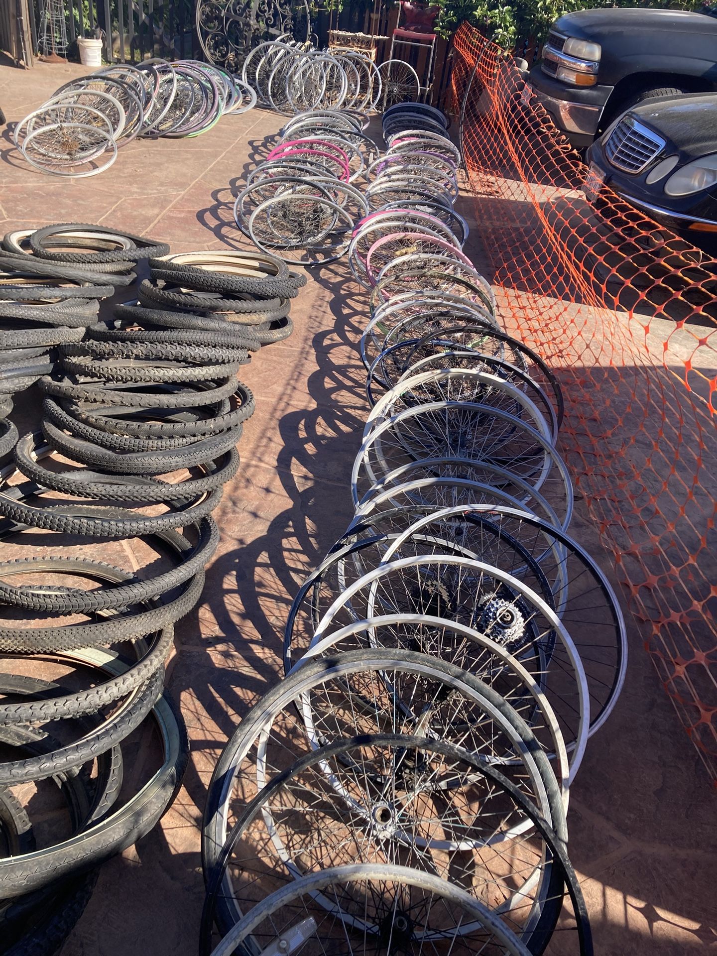 All different sizes. Rims $5 each and tires $3-$5. I also have bikes for sale.