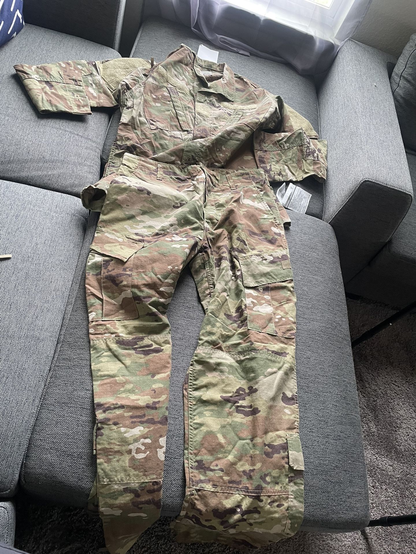 7 male OCP sets. Shirts: All Medium X- Long Pants: 4 Medium X-Long/ 3 Medium- Long
