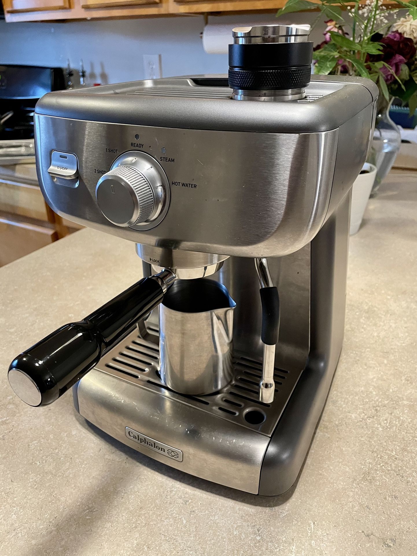 Calphalon Expresso Machine Works great we recently just upgraded. Includes everything you see in the pictures. Will also include the upgraded bottomless porter filter and adjustable coffee distributor & tamper. A $70 value included. Details in the link below. Calphalon BVCLECMP1 Temp iQ Espresso Machine with Steam Wand, Stainless https://offerup.com/redirect/?o=aHR0cHM6Ly9hLmNvL2QvYTl2MklBUQ==