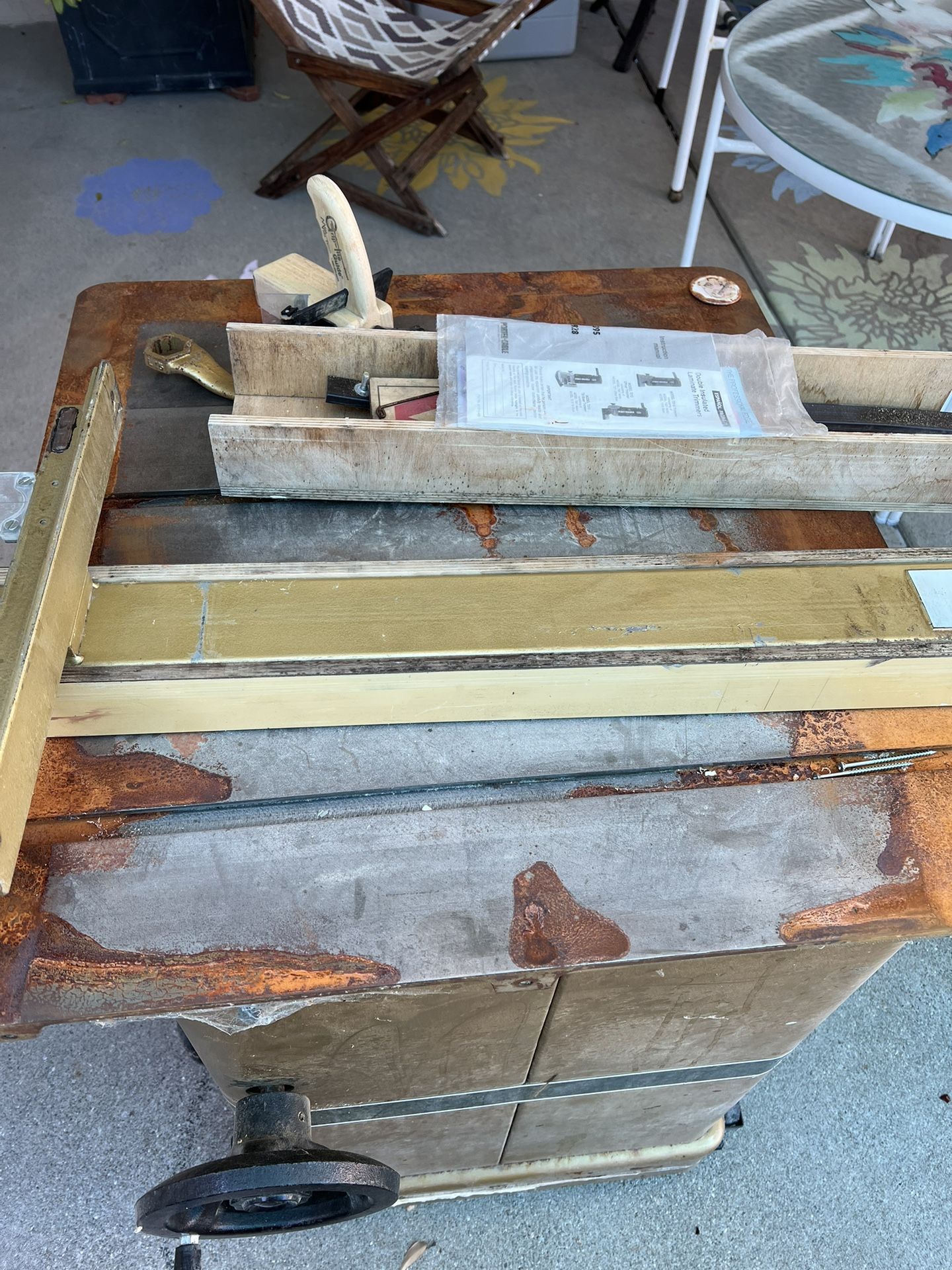 Powermatic Table Saw model 66. Still works. Rust on surface due to being outside. On wheels so it’s easy to move. Comes with blade cover, table extension, and whatever other accessories I can find. Must come pick up.