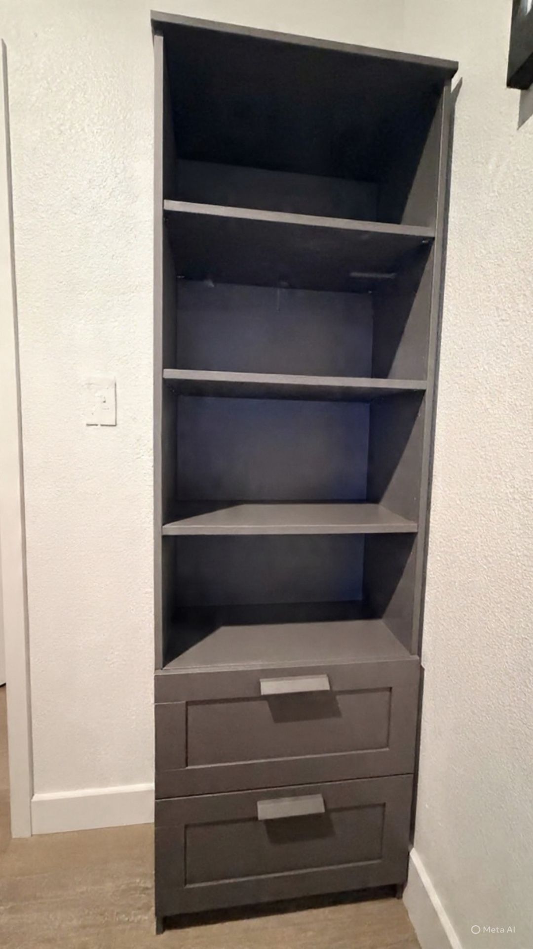 IKEA 3 piece bedroom set in good condition. Includes a tall dresser with glass top drawer, a matching nightstand, and a bookshelf with two storage drawers. All drawers open and close properly. Clean, modern gray finish that works well in any room. Great for a bedroom, guest room, office, or apartment. No major damage, just normal light wear. Price for the full set: $200 OBO Pickup only. No delivery.