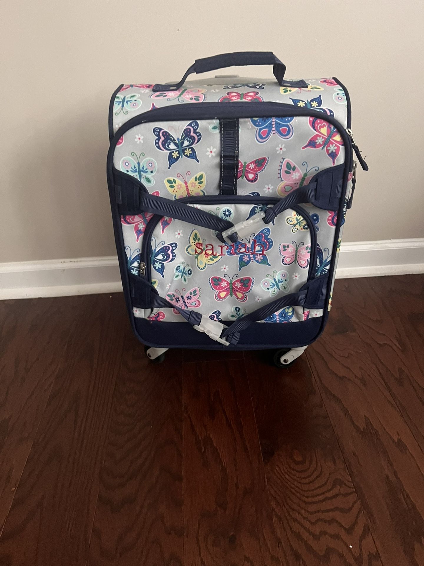 Kids carry on luggage. 19 in tall. Has monogram name “Sarah” engraved on front. Gently used in good condition