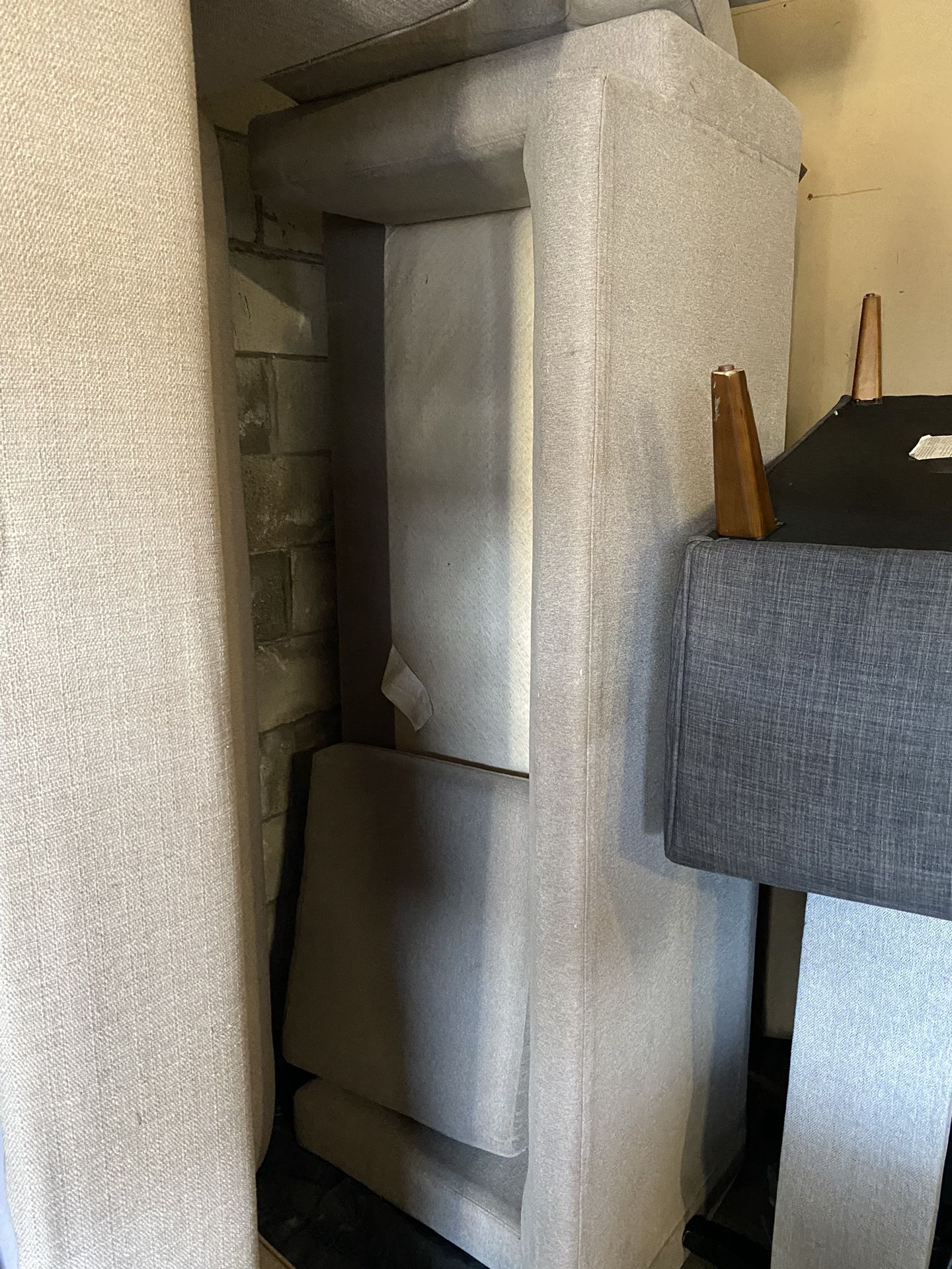 Grey couch Okay condition Missing back cushions Still has both seat cushions