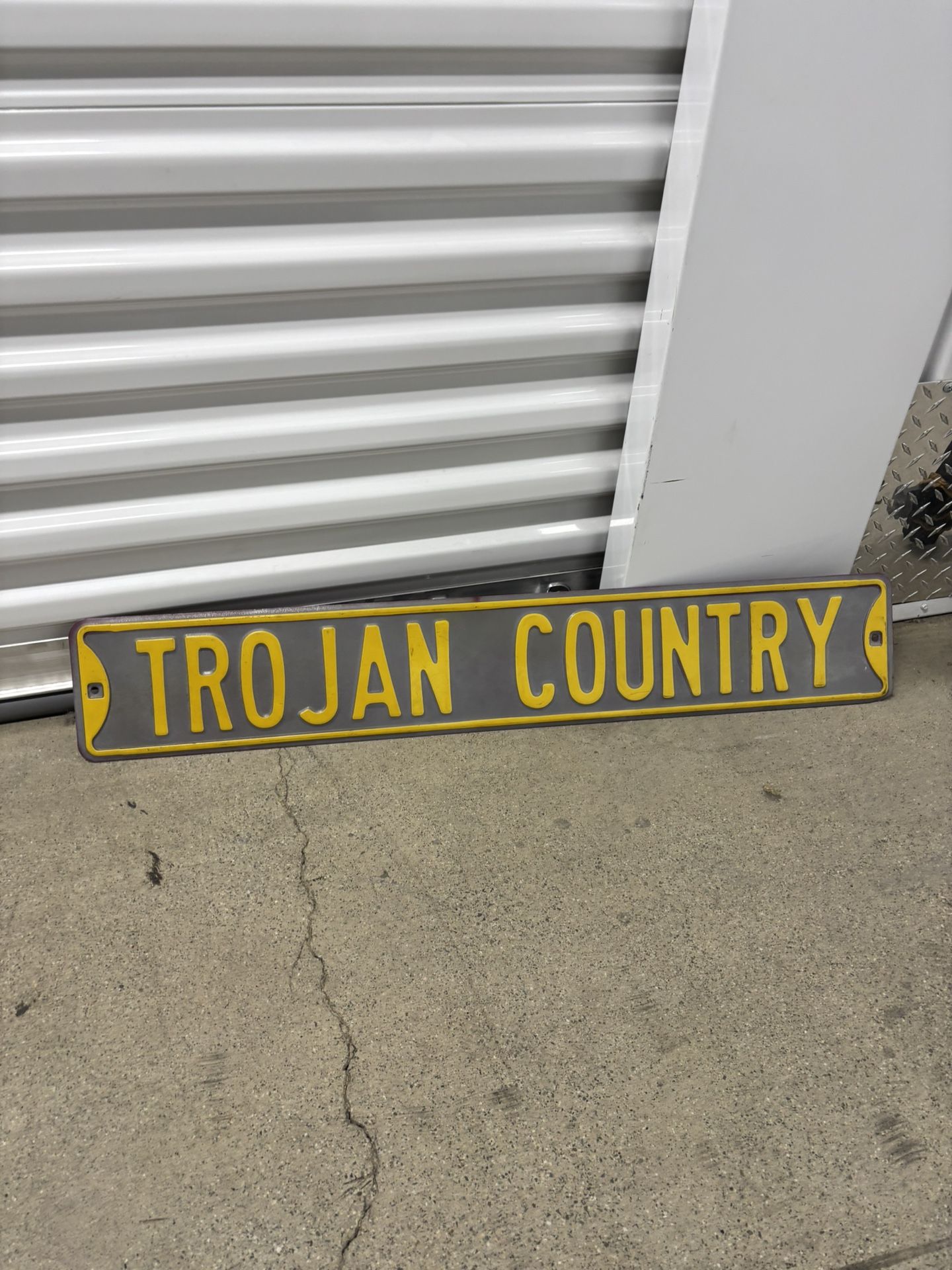 Amazing metal sign for the USC fan or alumni. It’s in great shape and it’s not the lightweight tin style sign, but a rugged heavier metal non bendable style. Perfect for a man cave and an ideal gift