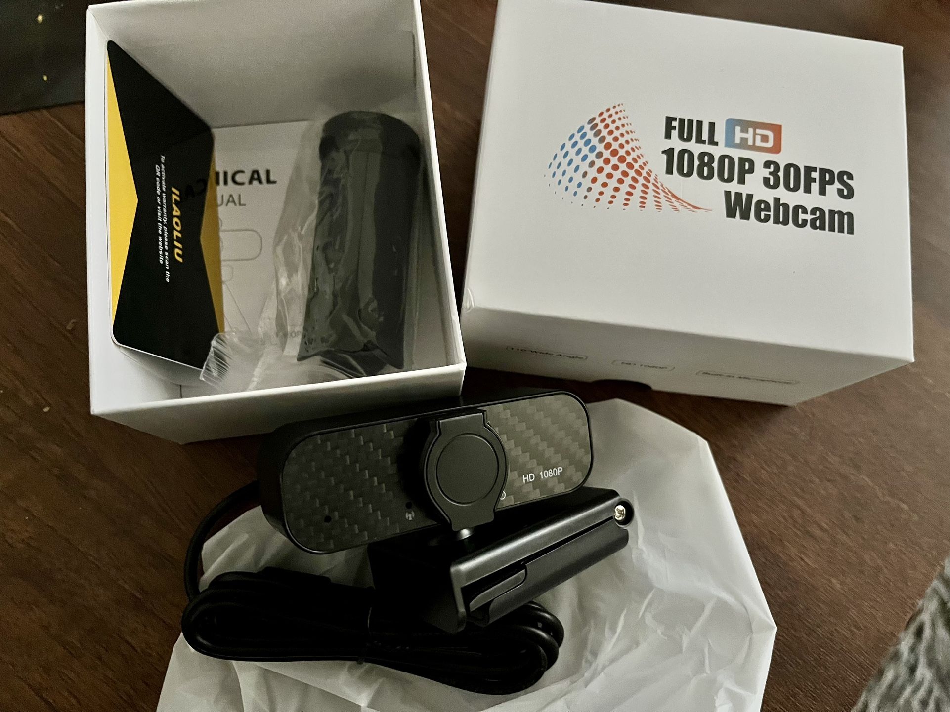 Webcam Full HD 1080P with Built-in Microphone and Rotatable Tripod, Carbon Fiber Board and Privacy Cover, Auto Light Correction, Adjustable FOV, Plug&Play for Zoom/Skype/Facetime/YouTube, Laptop/PC Brand New Only pickup