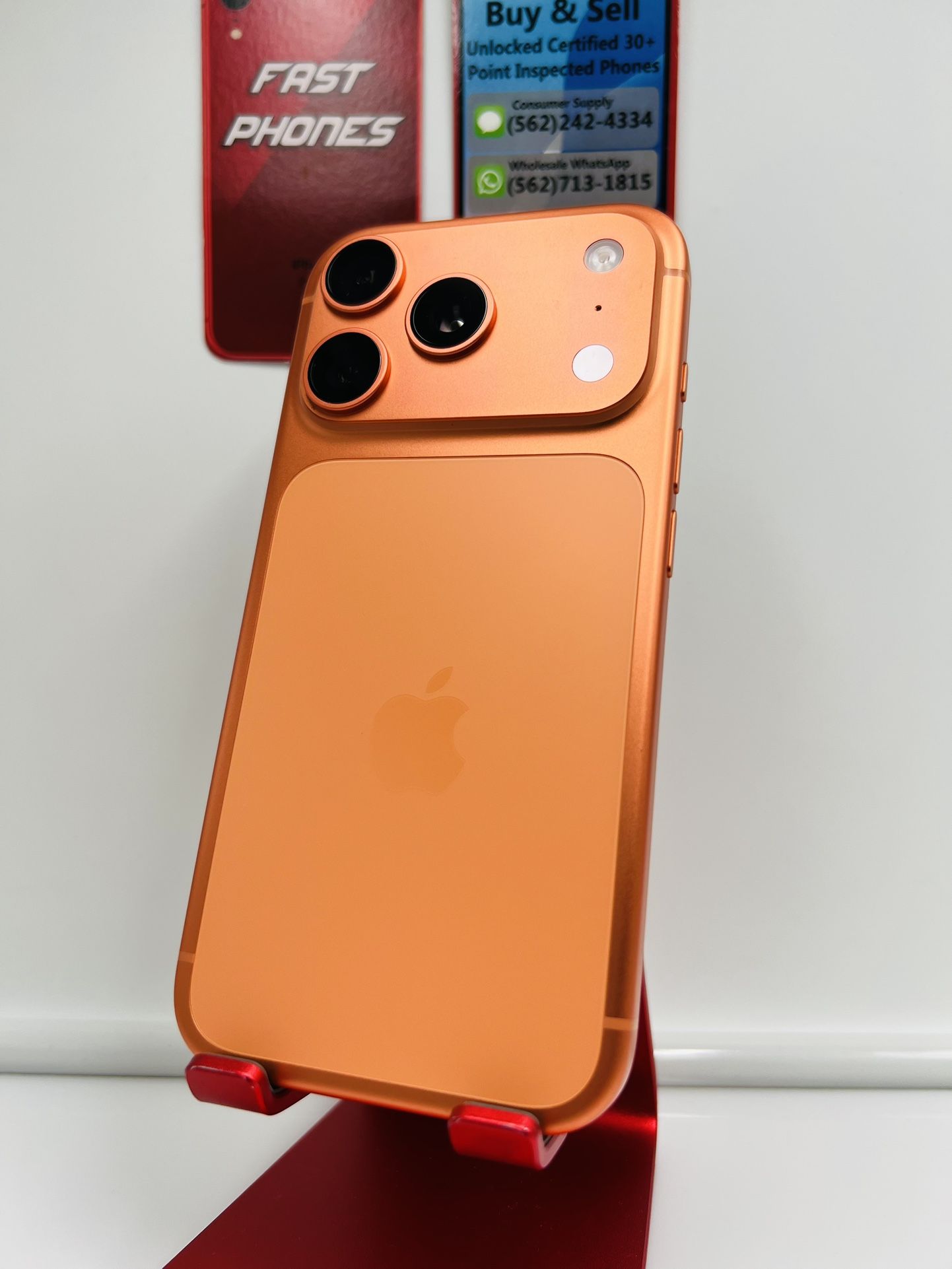 Apple iphone 17 PRO 256GB UNLOCKED Cosmic Orange (Device Only NO Accessories). Mint Condition. • UNLOCKED / NO SIM RESTRICTIONS : T-Mobile AT&T VERIZON SPRINT & ALL GLOBAL CARRIERS, Works in other Countries. • SCAN QR CODE FOR FULL SERVICE RECORD • Each Device TESTED through PhoneCheck® | Fully Functional | No Problems | Rigorous 30+ Point inspections on ALL Devices. • ALL ORIGINAL Apple Device, NO parts on this device have been replaced, it is a 100% Genuine Apple device. • FastPhones, the #1 Device Supplier in California; supplying Resellers, Shops and Consumers.