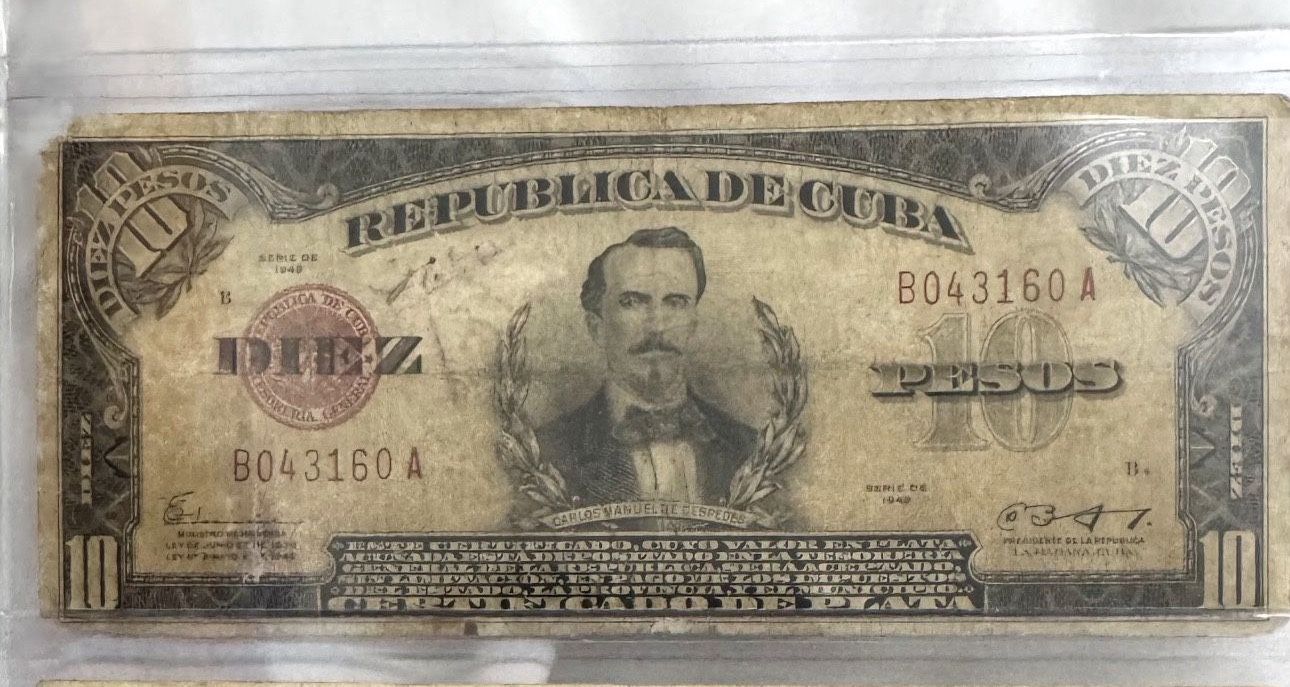 Billete de 10 pesos certificado en plata del año 1949 firmado por el presidente de la República Fulgencio Batista