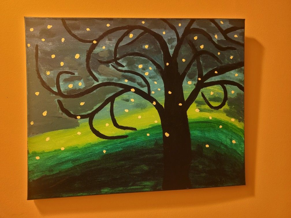 Handpainted "Night Lights" Acrylic On Canvas measures 16" x 20". $20 cash and pick up in 20876. Thanks.