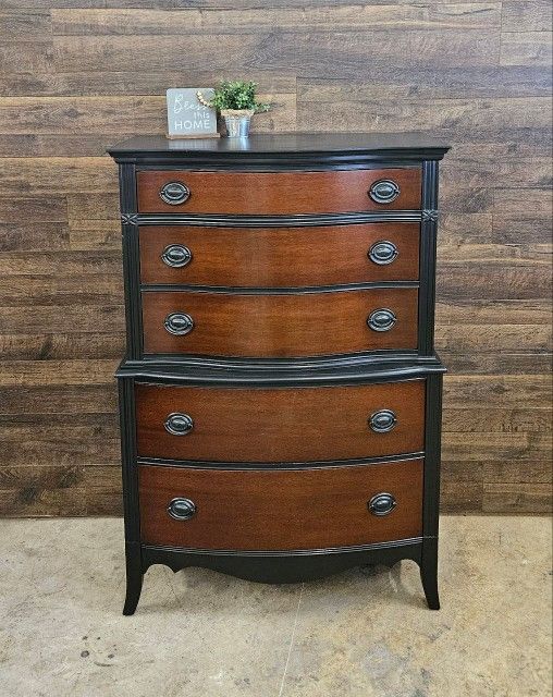 Chest of drawers $285 Painted with Heirloom Traditions paint in Warm Ember black with black hardware. Drawers are original finish but refreshed with gel stain and resealed. 5 dovetailed drawers slide smoothly. 36 inches wide, 20 inches deep, 53 inches high Check out the rest of my furniture and if you have something you would like to update by getting it painted, I would be happy to give you a quote!