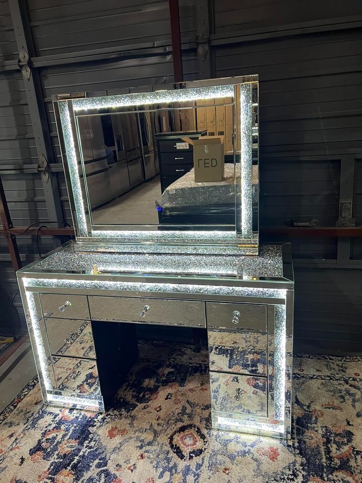 CLEARANCE SALE $749!! Regular Price $1400 Item Name: A66 Vanity Color: Glass/Mirror Features Led Lights in Vanity and Mirror Dimensions: Vanity 47.28"W x 19.69" D x 34.5"H Mirror 35.43" x 27.56" x 5.9" Same Day Delivery Available! Payment Options Available! NO CREDIT NEEDED FINANCING! ONLY $32 DOWN & 0% INTEREST! Come Check It Out In Person Today! Empire Appliances & Furniture 6340 North Freeway Houston, TX 77076 Mon-Sat 10AM-7PM Sunday 12PM-6PM CALL OR TEXT TODAY 7139029691