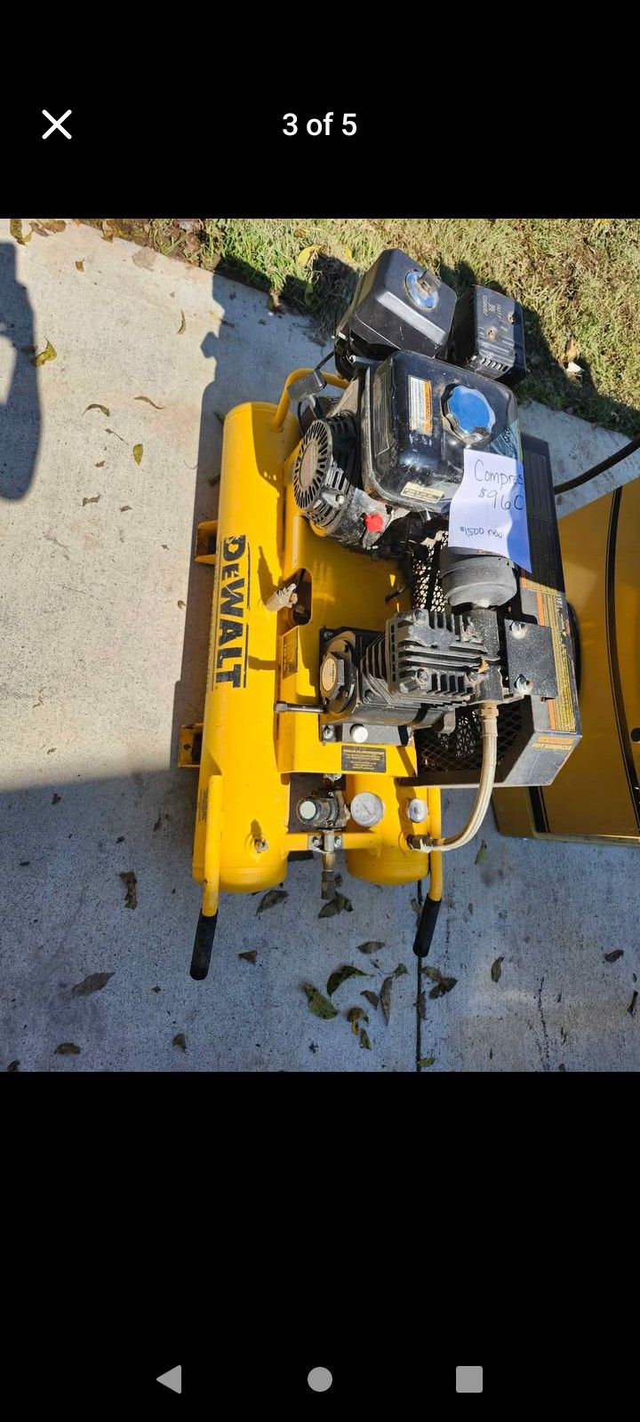 DeWalt gas compressor not in the best shape but still runs steady and cracks up fast builds up air pretty good to need to get 350 firm no low balls thank you