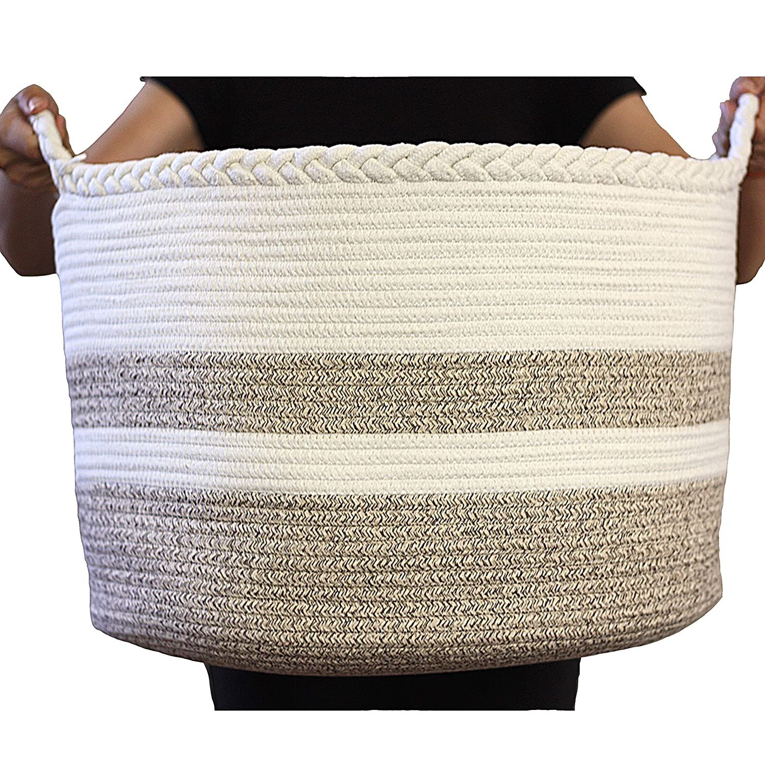 Cotton Rope Basket for Living Room Blanket Storage - Kids Playroom Storage Organizer - Woven Nursery Laundry Basket for Clothes, Bathroom Towels, Toys - Home Decorations Bins - Extra Large 20"D x 13"H