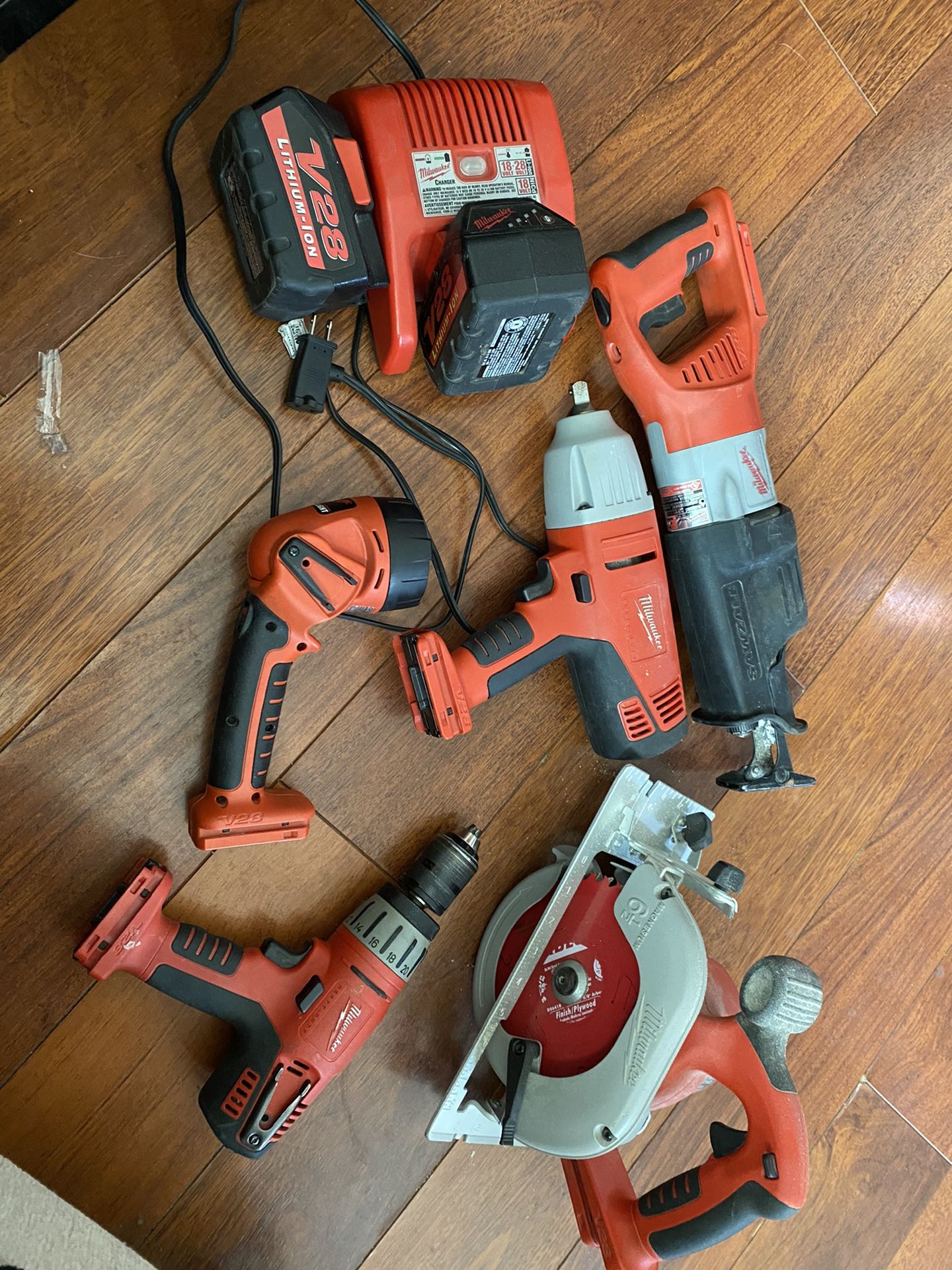 Milwaukee Heavy Duty Tools 1-Circular saw with blade 1-power Drill 1-sawzaw 1-flashlights 2-impact did Driller 2-batteries and 1-charger I got all new tools so want to sell these to make room. Can buy all together for $475 OBO