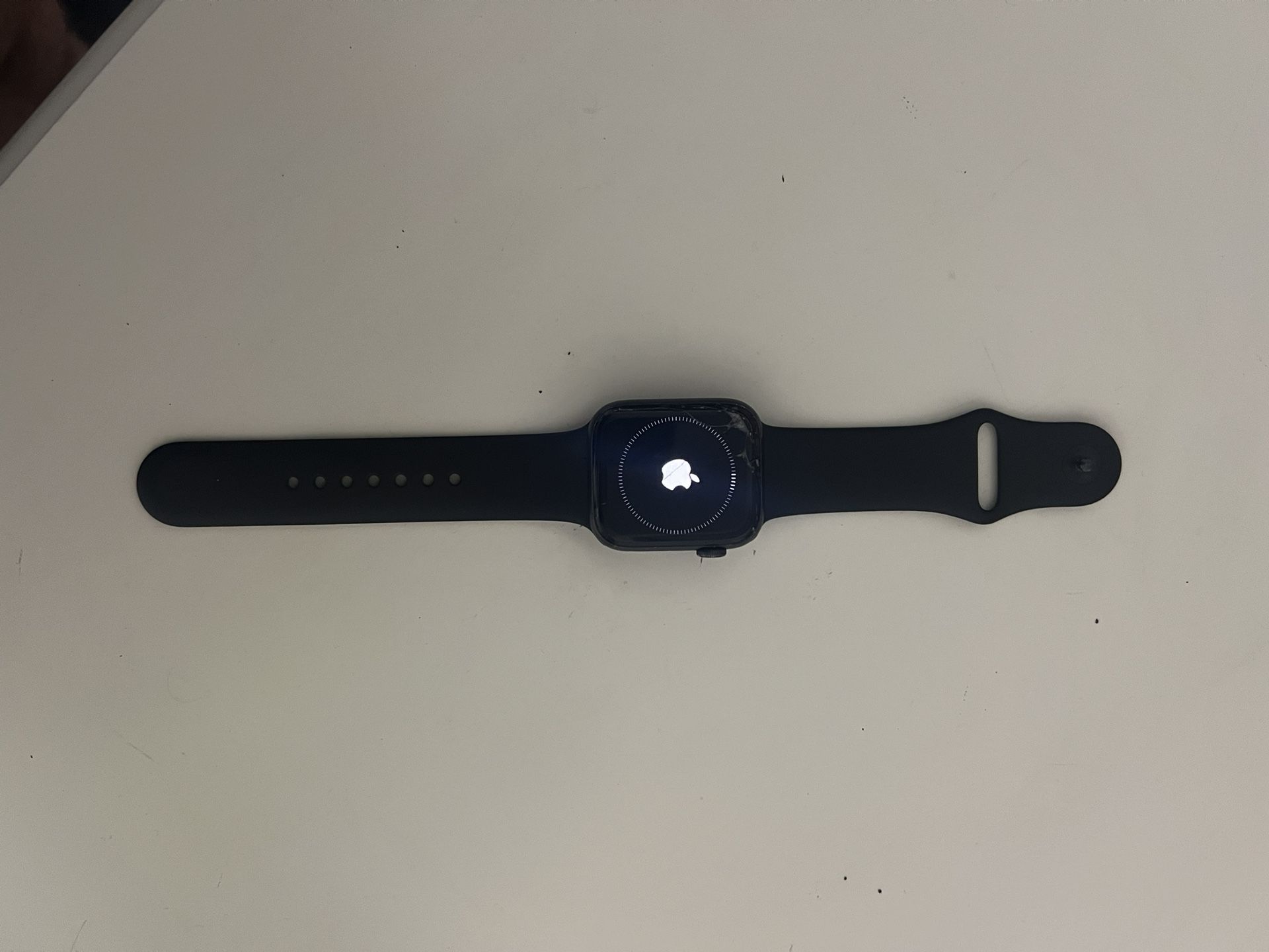 Cracked screen but functional, would not try underwater Band is unused Comes with charger but no block