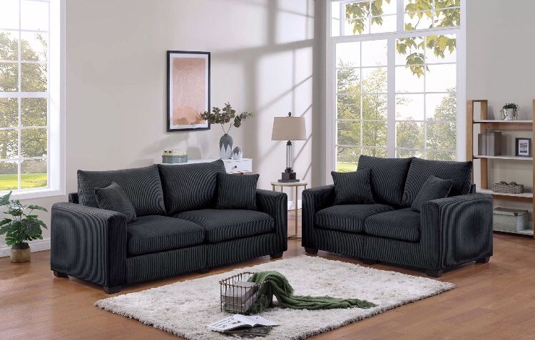 Beautiful! 2-pc Sofa Set Loveseat & Sofa Black, Grey, Dark Gray & Ivory Corduroy