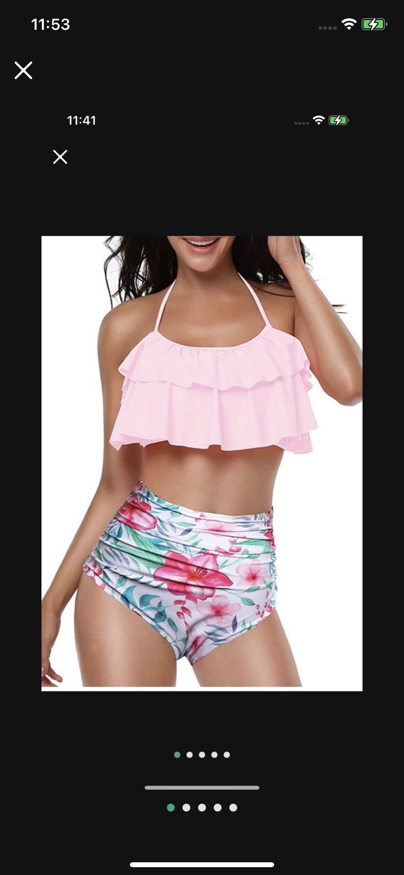 FREE BIKINI, please Read ... Yes, still available to purchase !! Check out my other offers , buy 2 items $5 off , 3 items $10 off and the 4th bikini is FREE π ...All Sales Final /No return /No refund /No Exchange, please ask questions before buying . Pick up Only by downtown or shipping New Pink ruffles off shoulder halter neck crop top tropical print high waisted bottom Size XL/ Extra Large bikini/bathing suit/swimwear/swimsuit