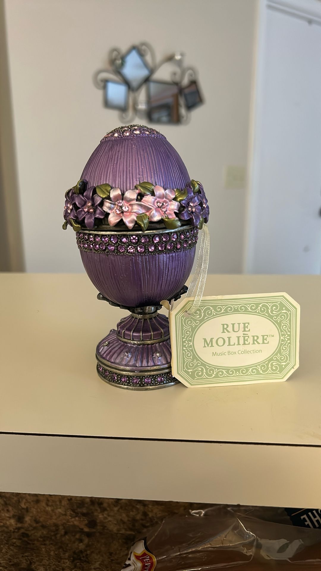 Vintage Stauer Purple Enamel Flowers Music Trinket Box. Wind up for Small jewelry pieces. Excellent condition. Wind up music works great.