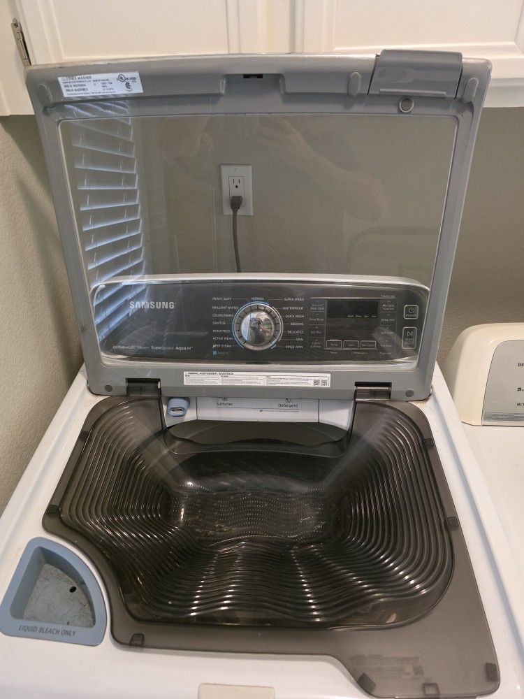 This washer has been amazing so far but I'm moving to a place that has everything already so no need to keep this. *Top load *Steam wash *Hand wash sink in basin under hood *Large 5.2 cubic feet of space *Lots of modes and keeps everything looking so fresh and clean **I also have a dryer for sale. If you want both, I can sell them both for a discount if you're interested** ****Thanks for looking. Please check out my other ads, as I'm moving and trying to get rid of a lot, for the right price****