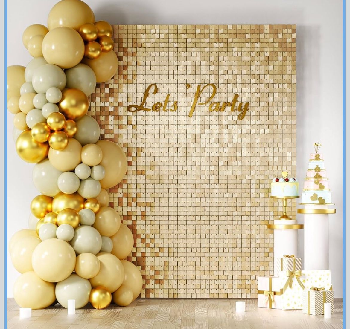 Champagne Gold Shimmer Wall Backdrop 24PCS Gold Sequins Backdrop Decoration Panels, Photo Backdrops for Birthday, Anniversary Wedding Engagement Decor