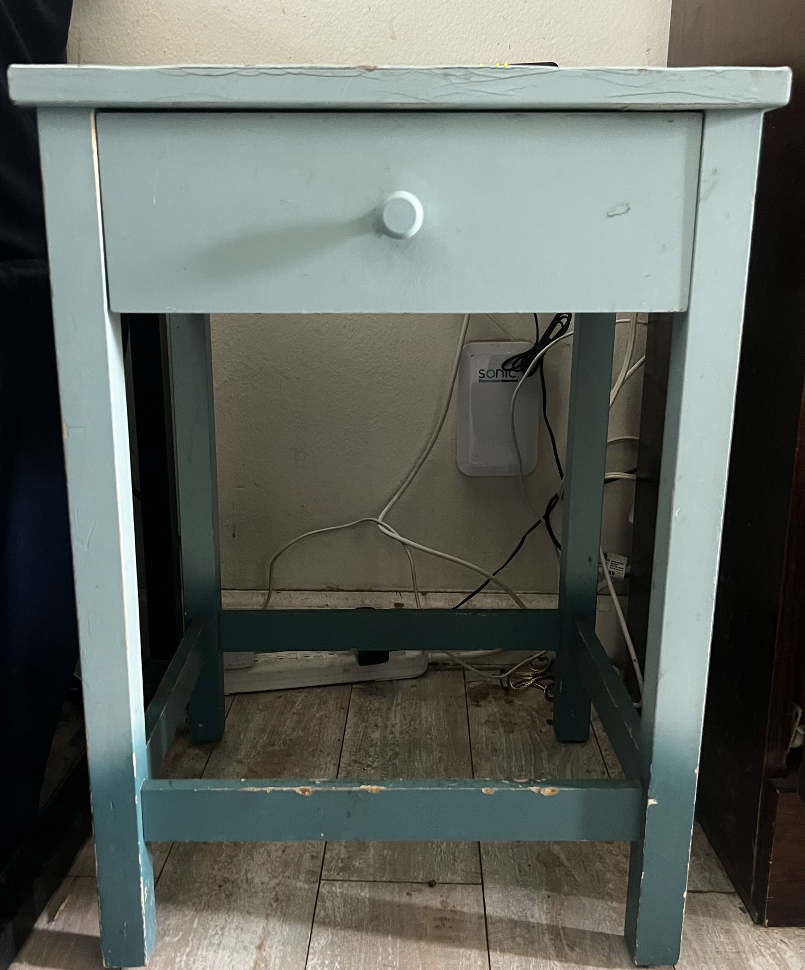 Pick up in El Segundo Small solid wood side table with drawer. Structurally sound, cosmetic wear from normal use. Drawer works. Good for bedside table, plant stand, entryway, or garage storage.