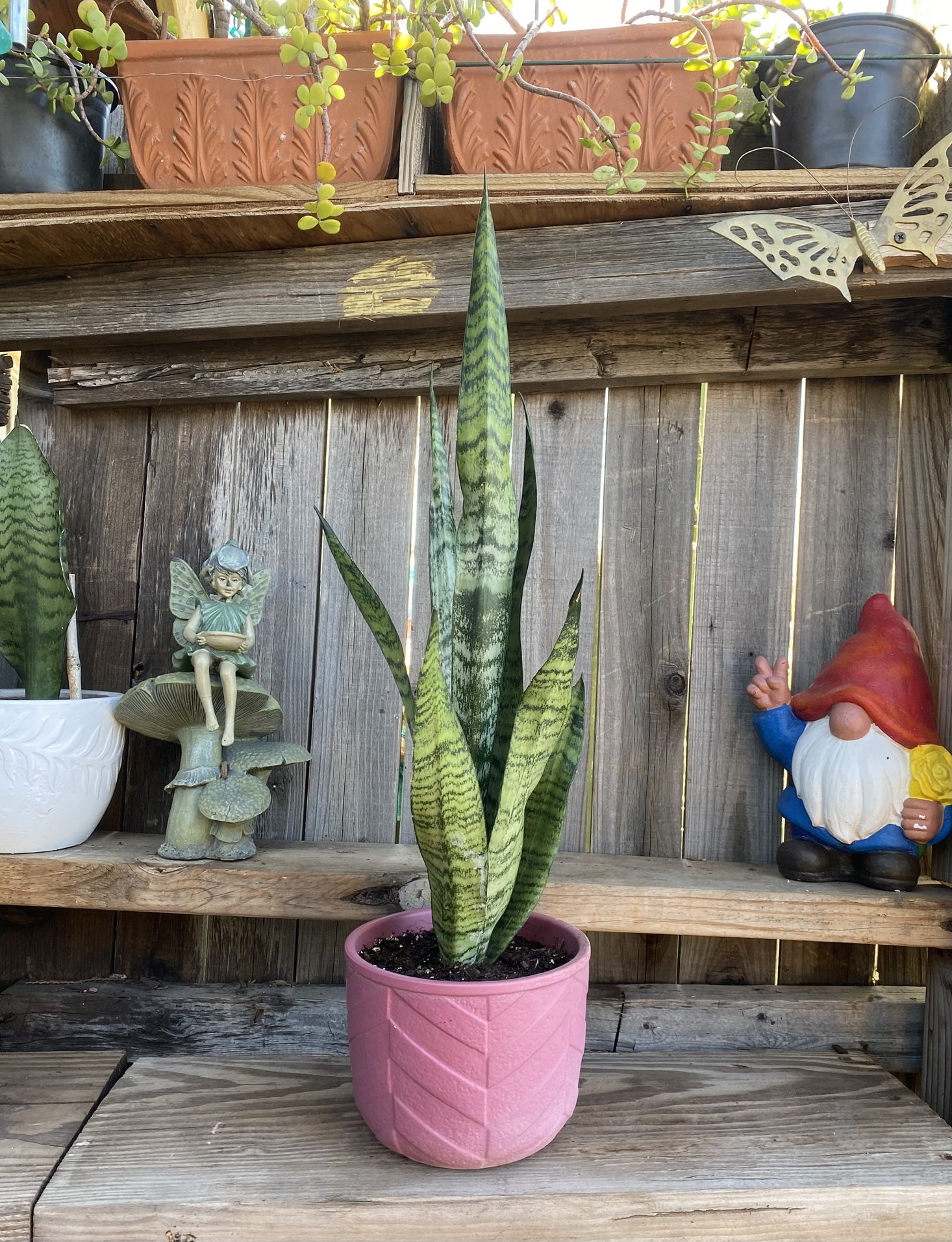 Indoor Mother-in-Law or Snake Plant 26” Tall From Bottom Pot to Top plant with Pink Ceramic Pot (Pot size 7”X6” This Plant Helps Remove Toxins From The Air! They Can Be Anywhere Inside the House (Never Direct Sun Light or Very Cold Areas) $25 Please Check My Other Offers Thanks!