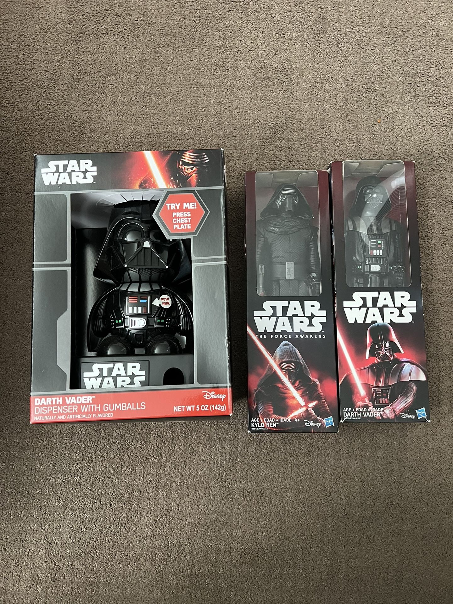 Excellent condition and never opened Darth Vader Gumball Dispenser & action figures. . Smoke and pet free home. STAR WARS Disney DARTH VADER Dispenser With Gum balls Hasbro Kylo Ren 12inch Action Figure New Disney The Force Awakens Star Wars Hasbro Darth Vader 12inch Action Figure New Disney Star Wars