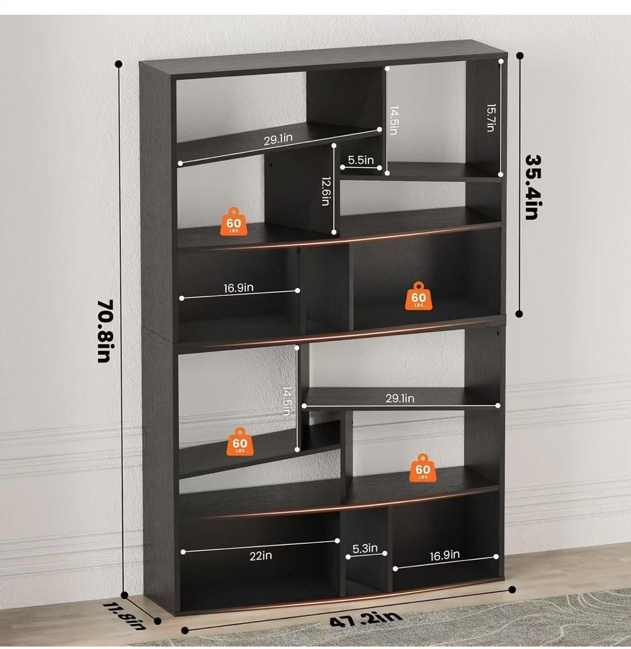 16 Cube Bookcase, 6 Tier Irregular Freestanding Geometric Bookshelf with Anti-Tipping Kits, Black Mid-Century Modern Large Cube Storage Organizer Book Shelf for Living room, Home, Office