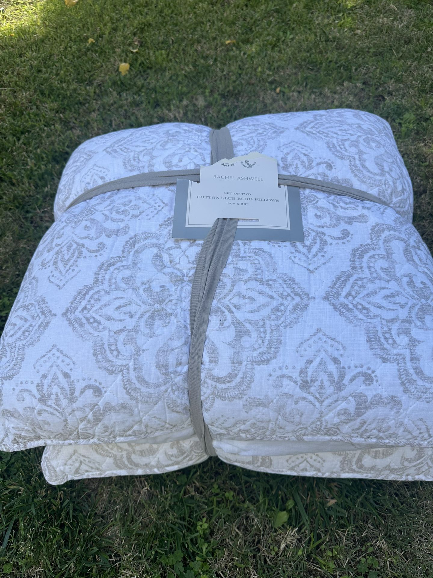 26x26 inch European throw pillows with removable covers. Easy to change out for any color scheme you want. Set of 2. Five sets available. Price is per set.