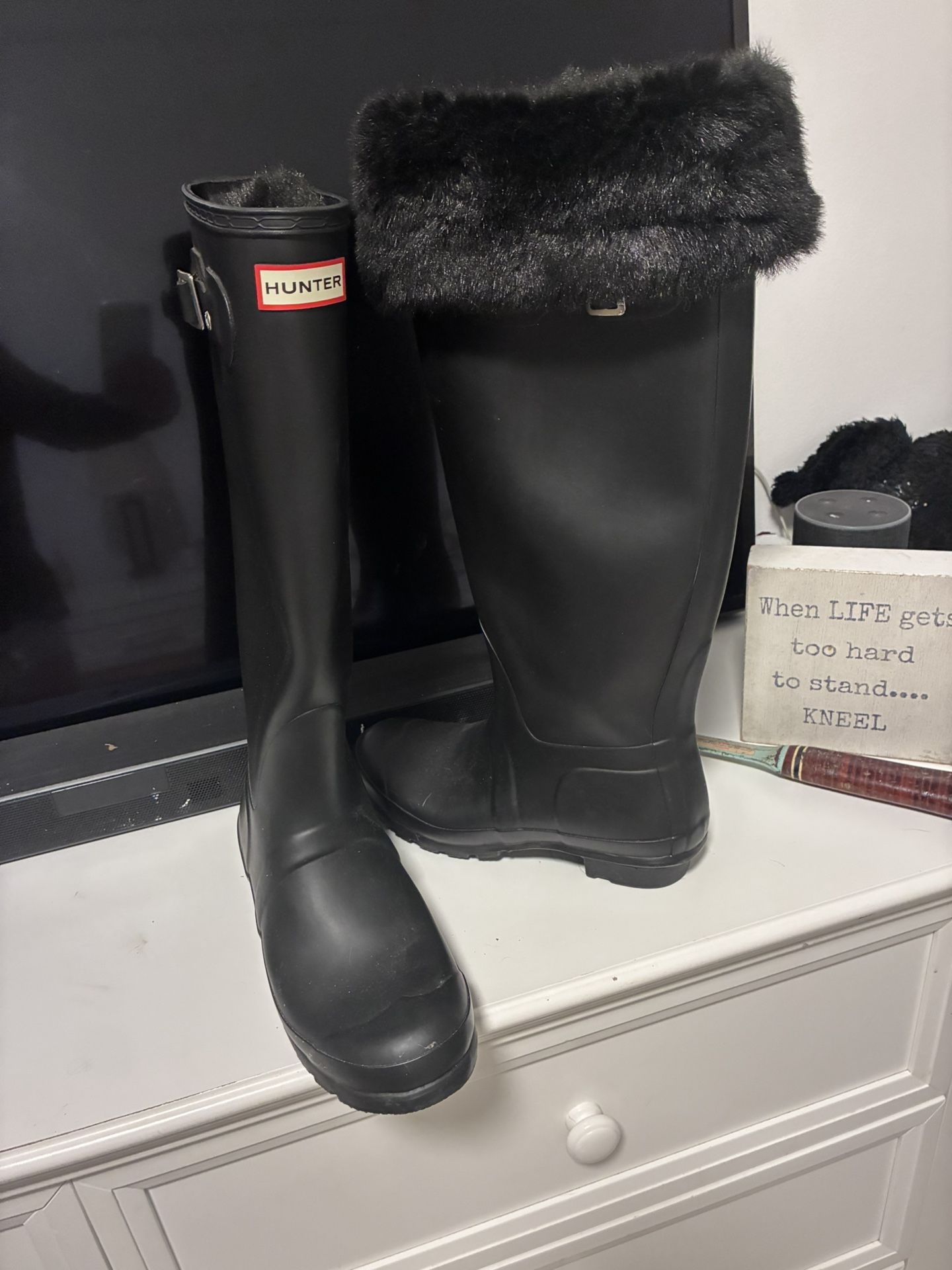Hunter rain boots, size 8 with removable sock insert with fur at top. Like new.