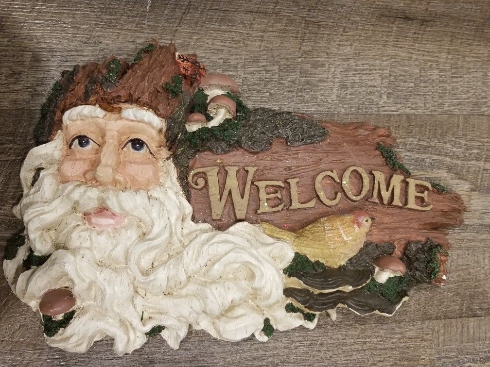Christmas Santa Woodland Welcome Sign Woodsy Outdoorsy Kris Kringle 12" (1 Foot). Not Real Wood Used. See pictures for Condition Specifics